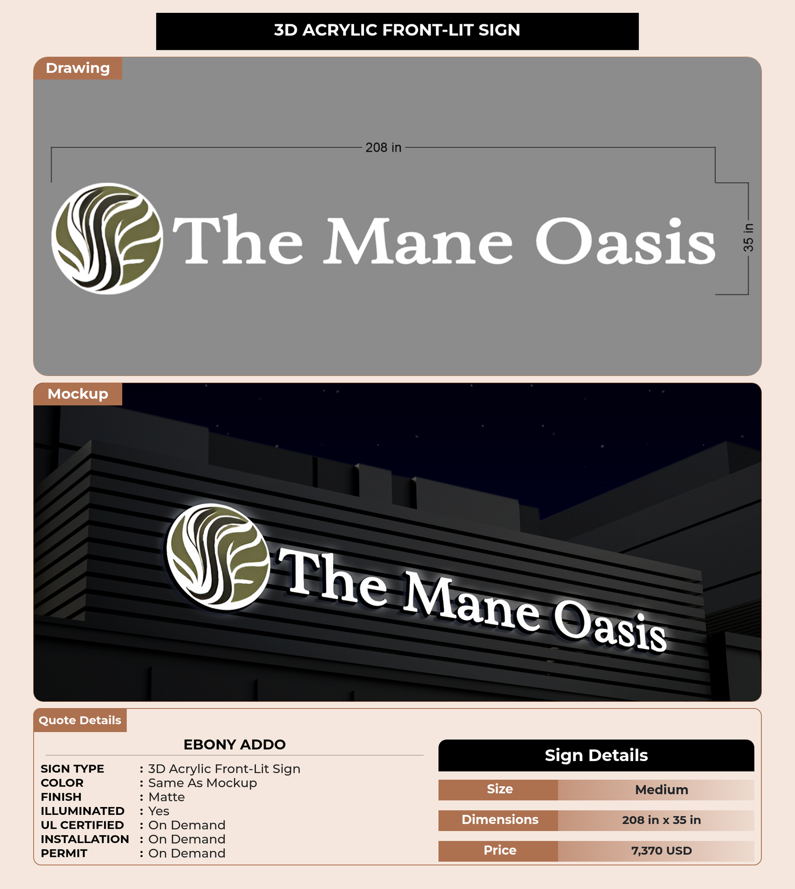 Crafted with premium material, this signage will elevate your business image, precisely mirroring your logo for a professional look.