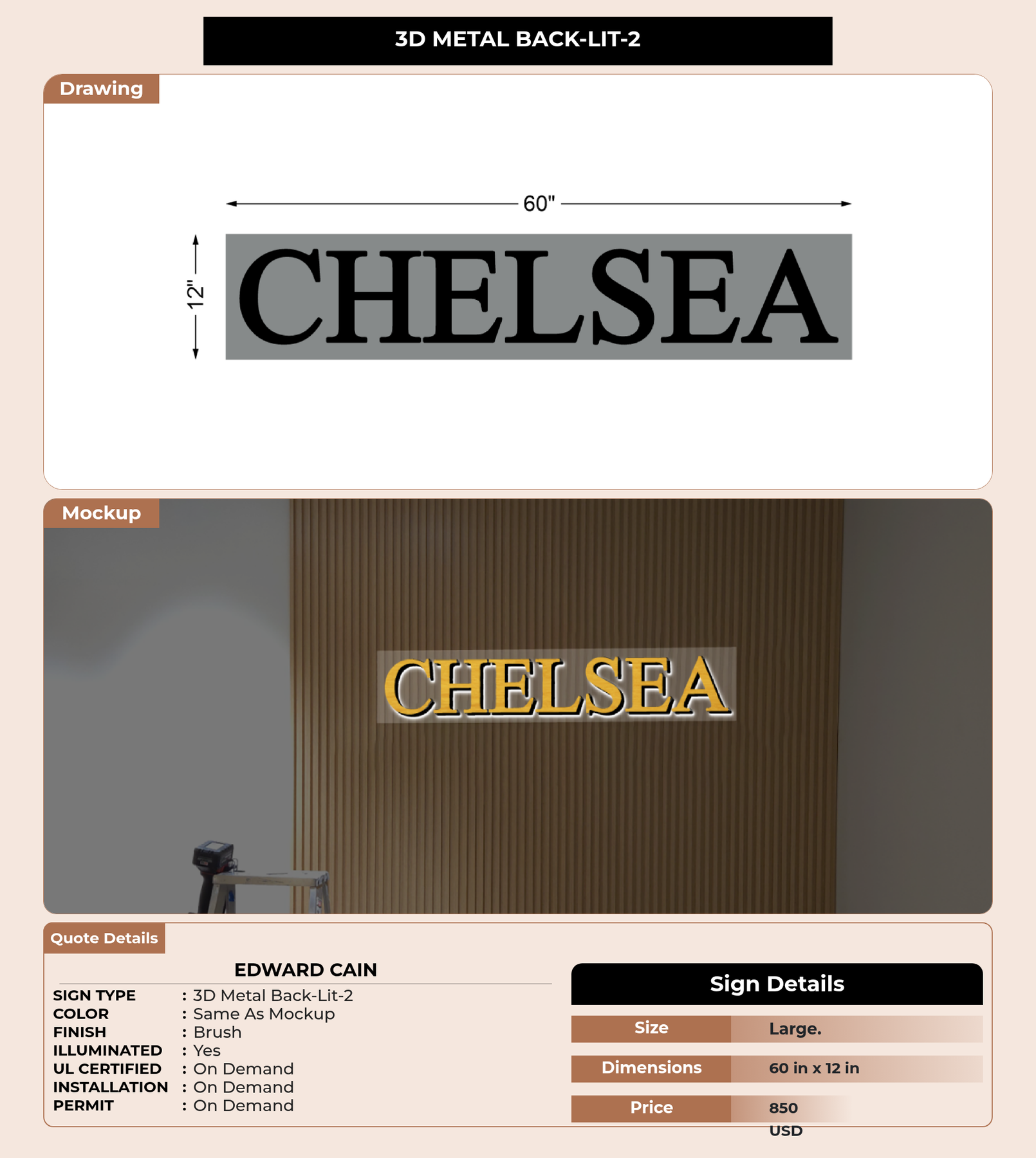 Crafted with premium material, this signage will elevate your business image, precisely mirroring your logo for a professional look.