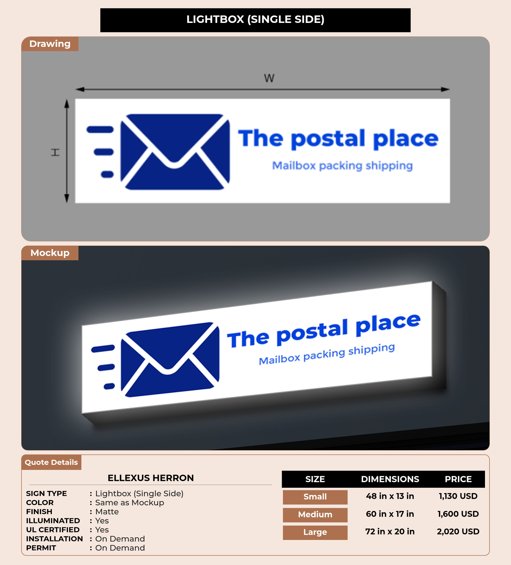 Enhance your business presence with our expertly crafted signage, made from top-quality material, to ensure longevity and durability. Fully customizable to reflect your unique brand identity, our signage offers a professional and polished appearance. Easy to install and low maintenance, it’s the perfect addition to any business setting. Trust us to deliver a product that not only meets but exceeds your expectations.