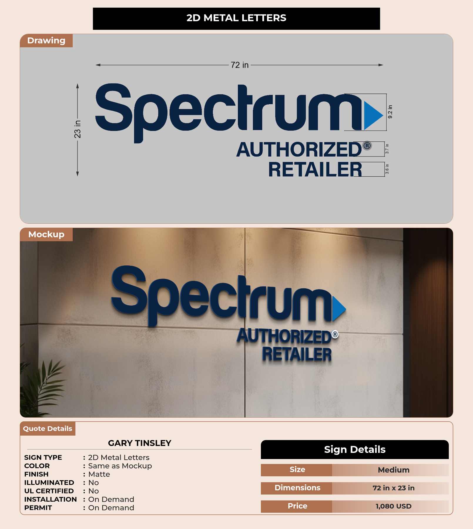 Crafted with premium material, this signage will elevate your business image, precisely mirroring your logo for a professional look.