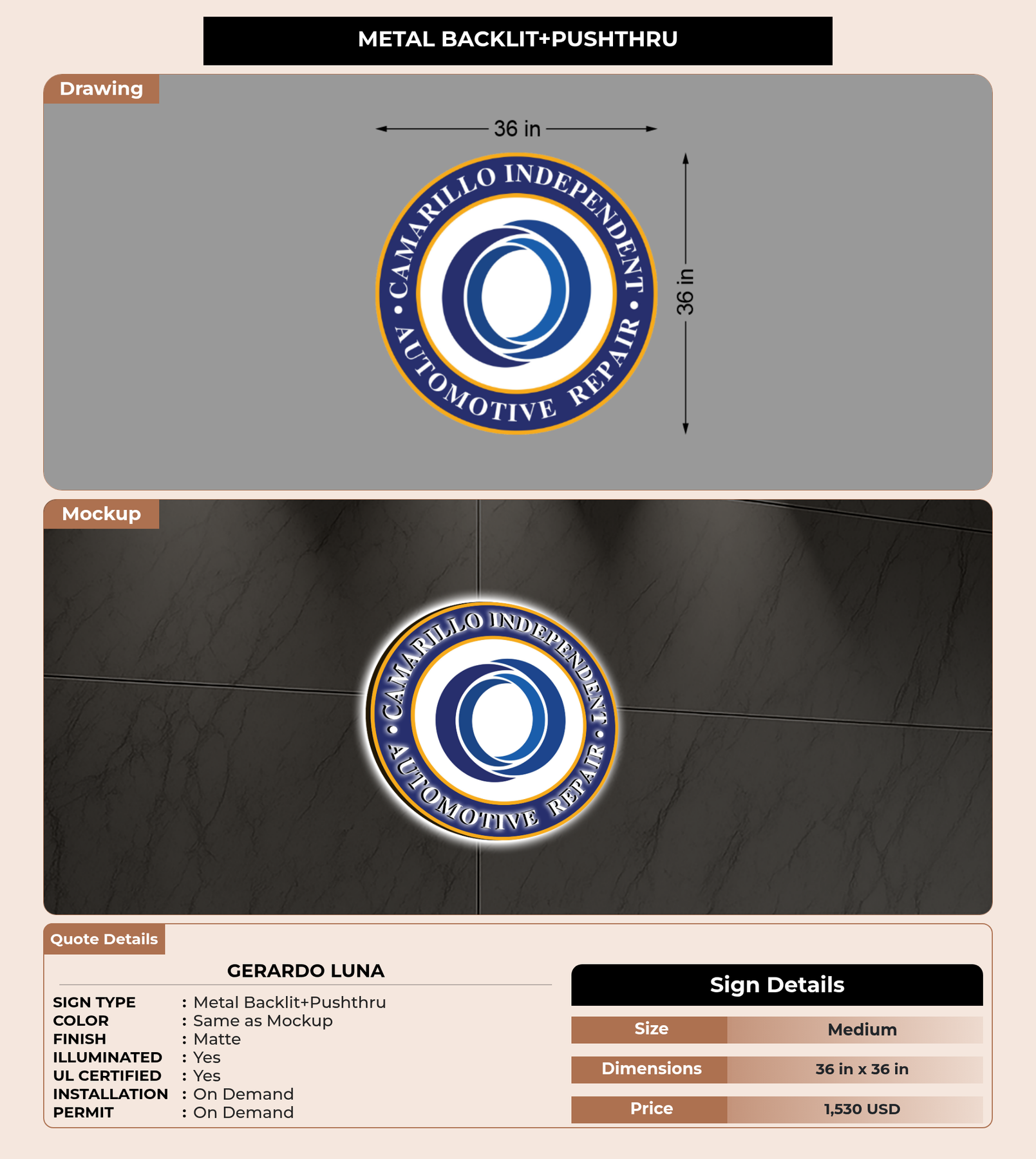 Eye-catching custom 3D sign for Gerardo Luna