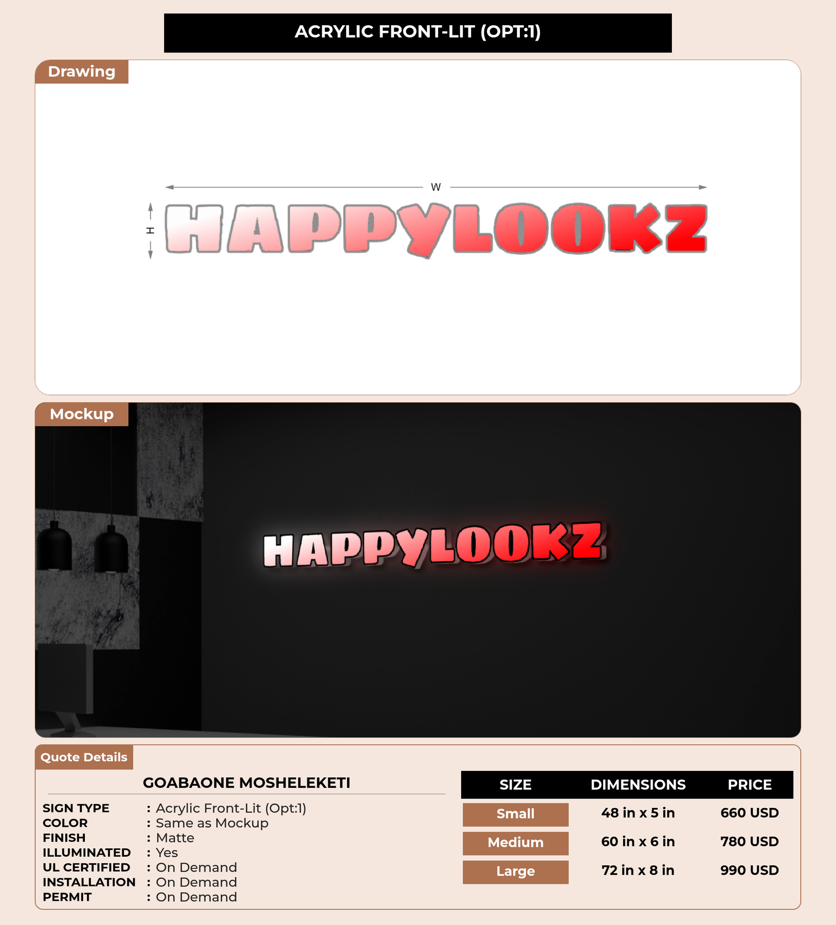 Enhance your business presence with our expertly crafted signage, made from top-quality material, to ensure longevity and durability. Fully customizable to reflect your unique brand identity, our signage offers a professional and polished appearance. Easy to install and low maintenance, it’s the perfect addition to any business setting. Trust us to deliver a product that not only meets but exceeds your expectations.