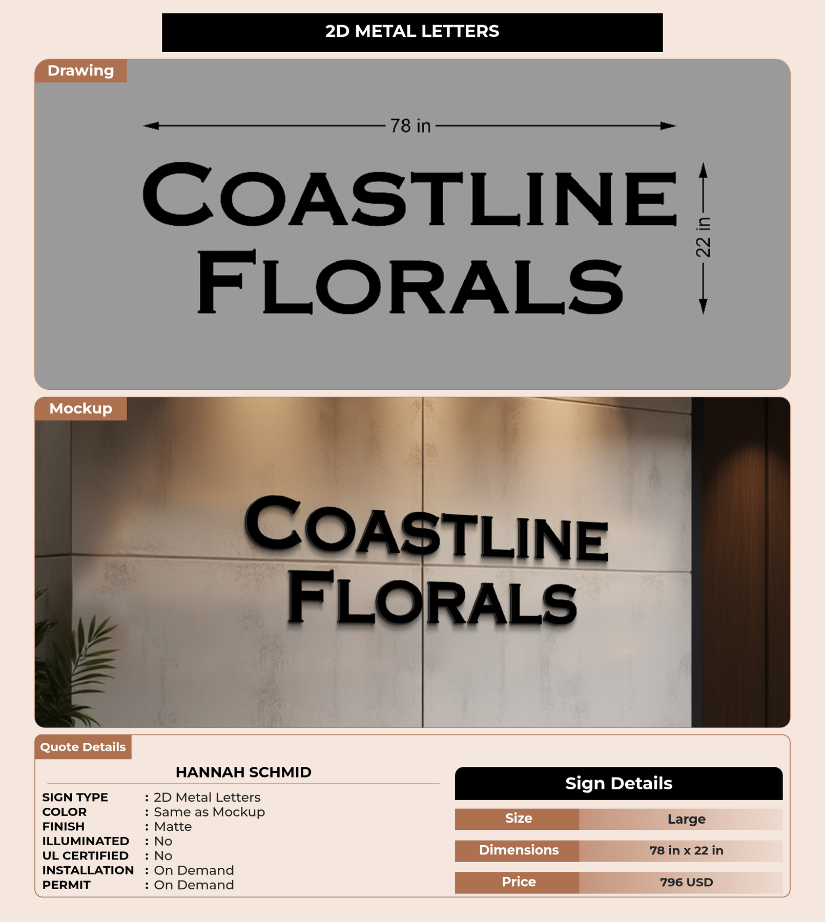 Enhance your business presence with our expertly crafted signage, made from top-quality material, to ensure longevity and durability. Fully customizable to reflect your unique brand identity, our signage offers a professional and polished appearance. Easy to install and low maintenance, it’s the perfect addition to any business setting. Trust us to deliver a product that not only meets but exceeds your expectations.
