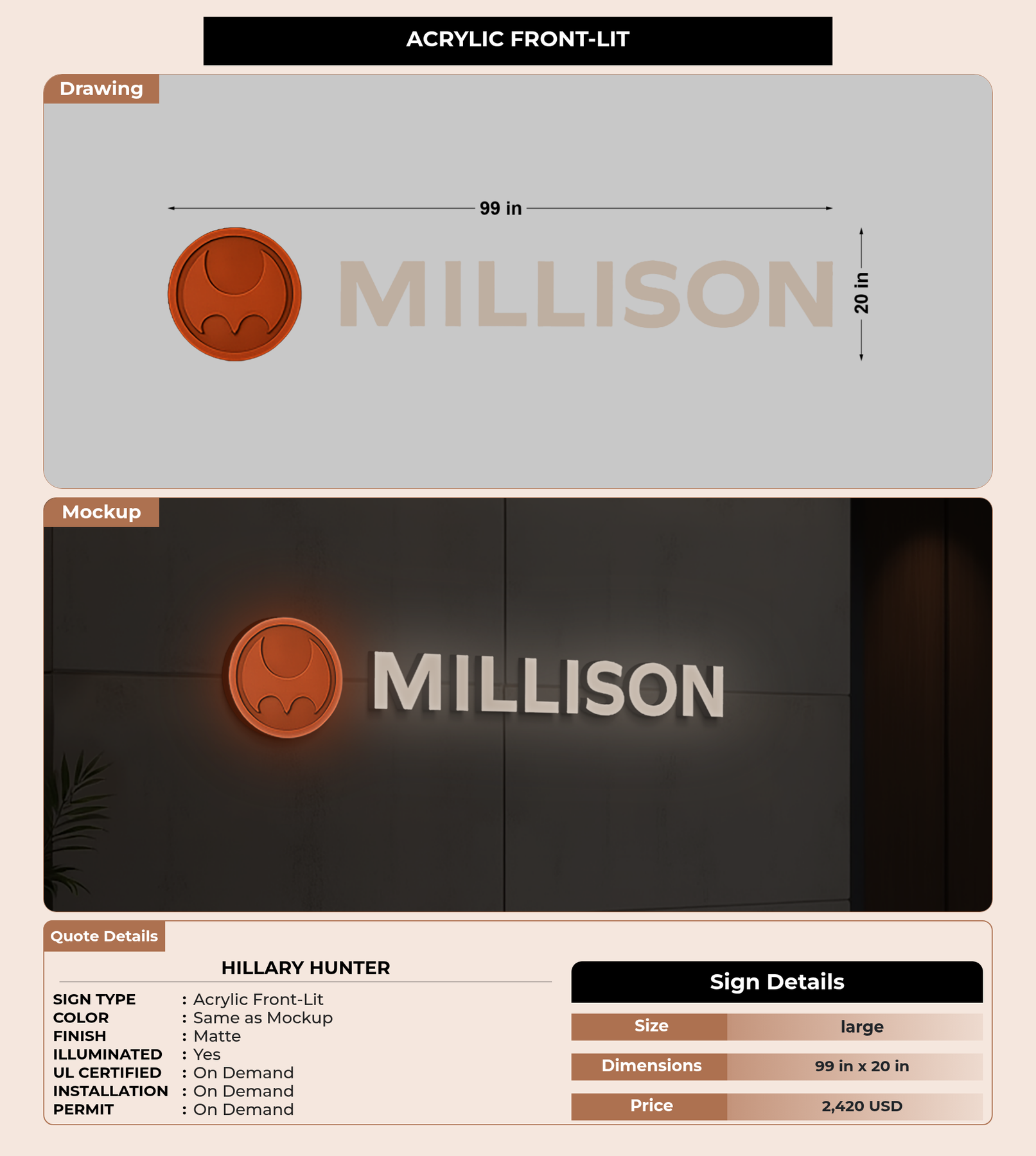 Enhance your business presence with our expertly crafted signage, made from top-quality material, to ensure longevity and durability. Fully customizable to reflect your unique brand identity, our signage offers a professional and polished appearance. Easy to install and low maintenance, it’s the perfect addition to any business setting. Trust us to deliver a product that not only meets but exceeds your expectations.