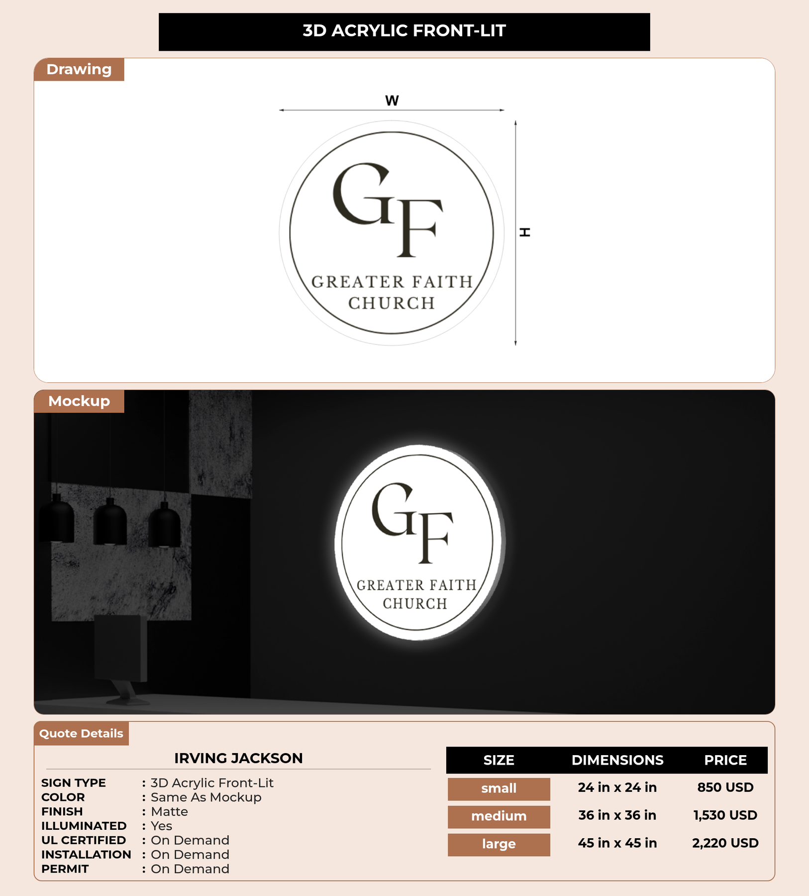 Crafted with premium material, this signage will elevate your business image, precisely mirroring your logo for a professional look.