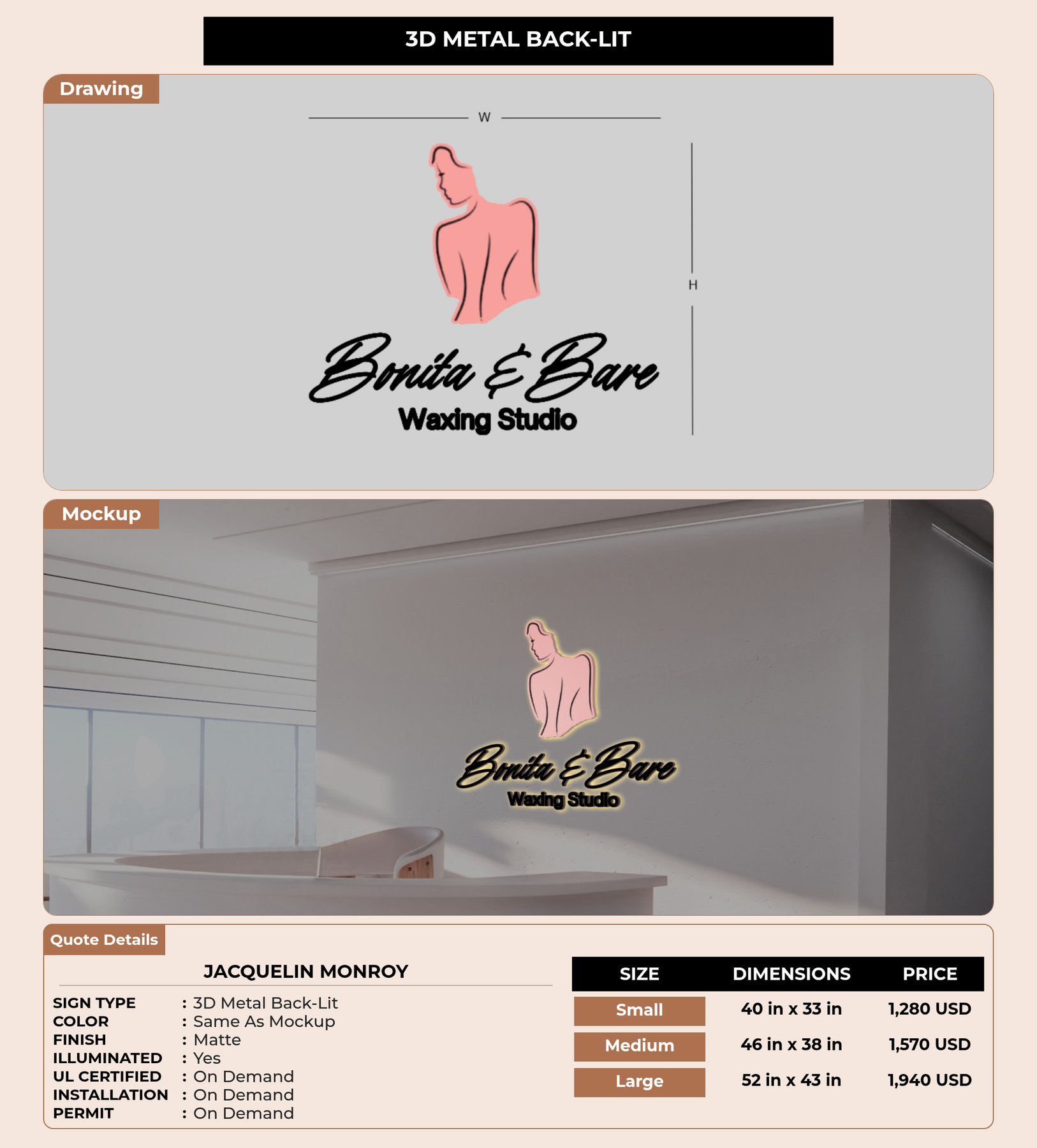 Eye-catching custom 3D sign for Jacquelin Monroy