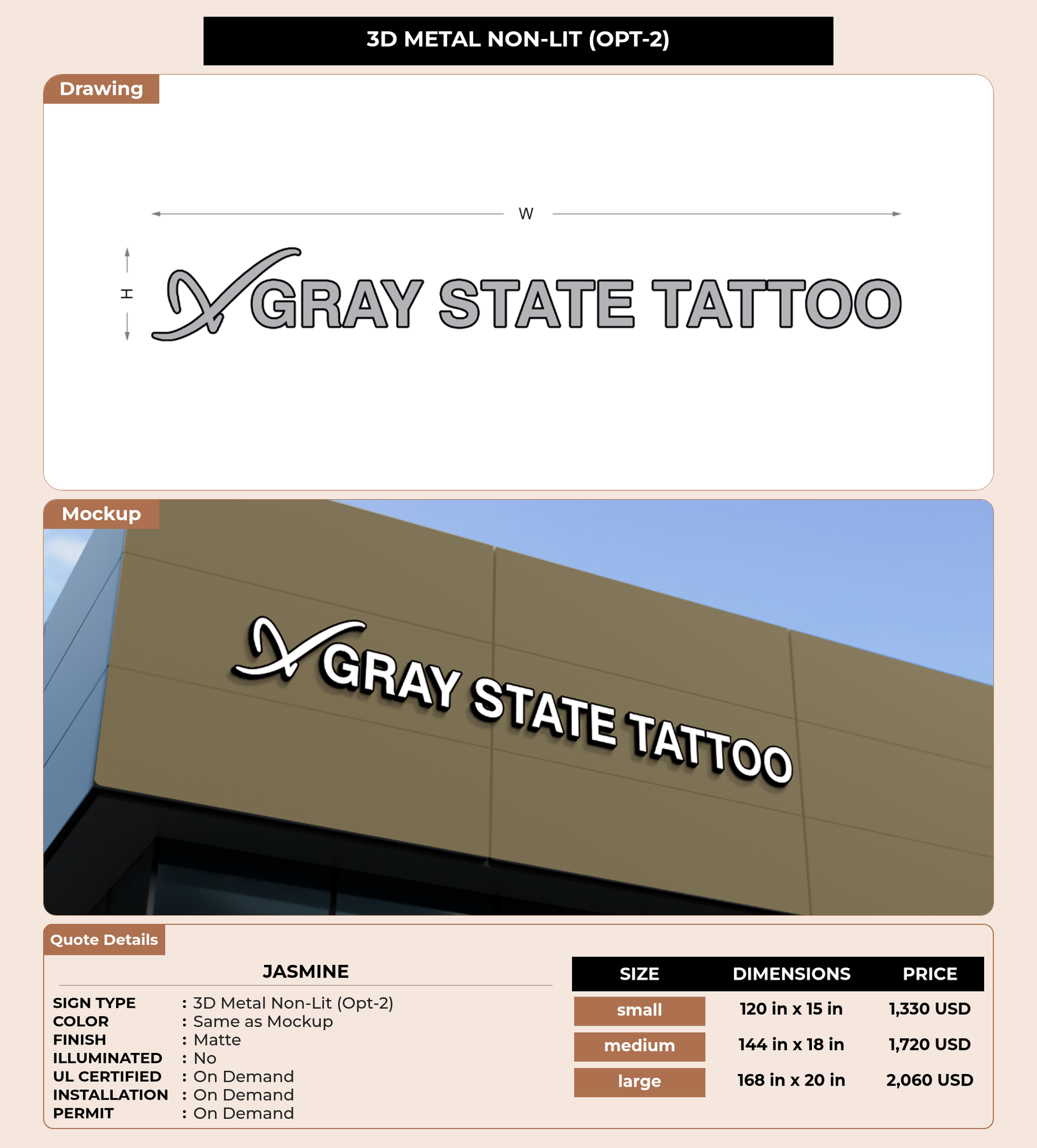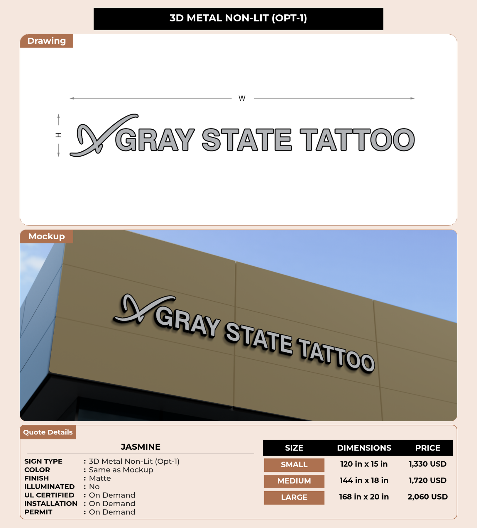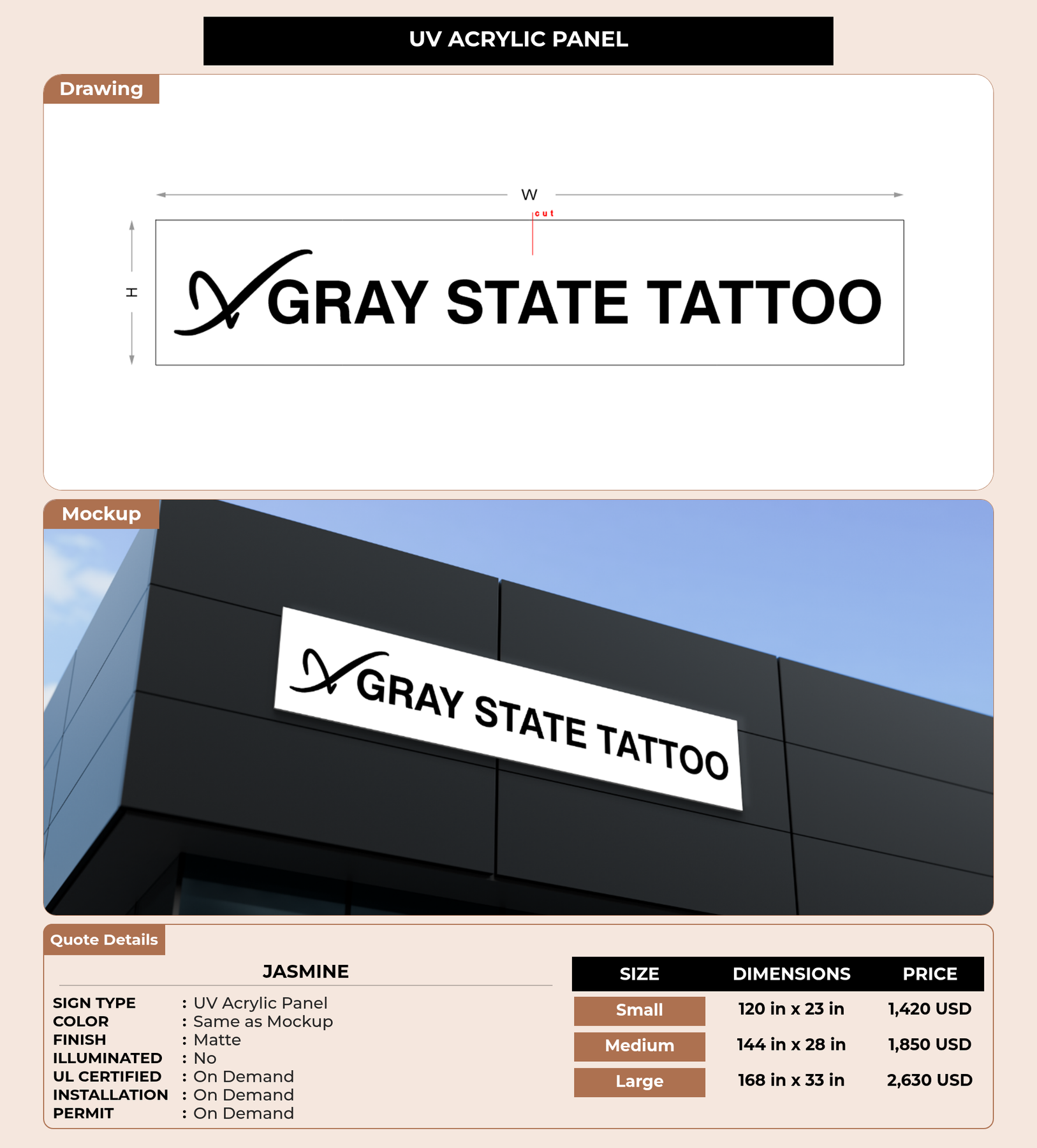 Enhance your business presence with our expertly crafted signage, made from top-quality material, to ensure longevity and durability. Fully customizable to reflect your unique brand identity, our signage offers a professional and polished appearance. Easy to install and low maintenance, it’s the perfect addition to any business setting. Trust us to deliver a product that not only meets but exceeds your expectations.