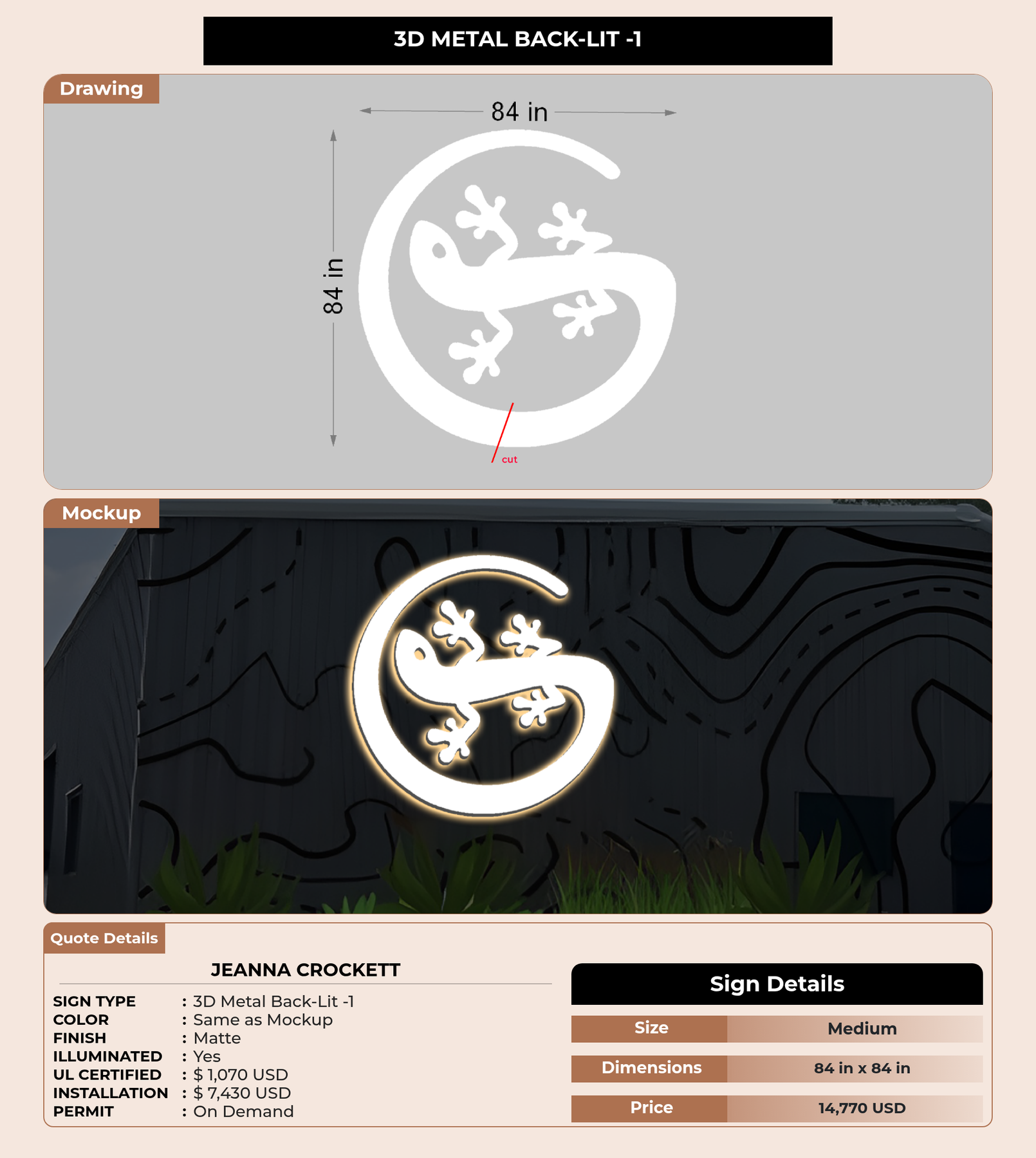 Crafted with premium material, this signage will elevate your business image, precisely mirroring your logo for a professional look.