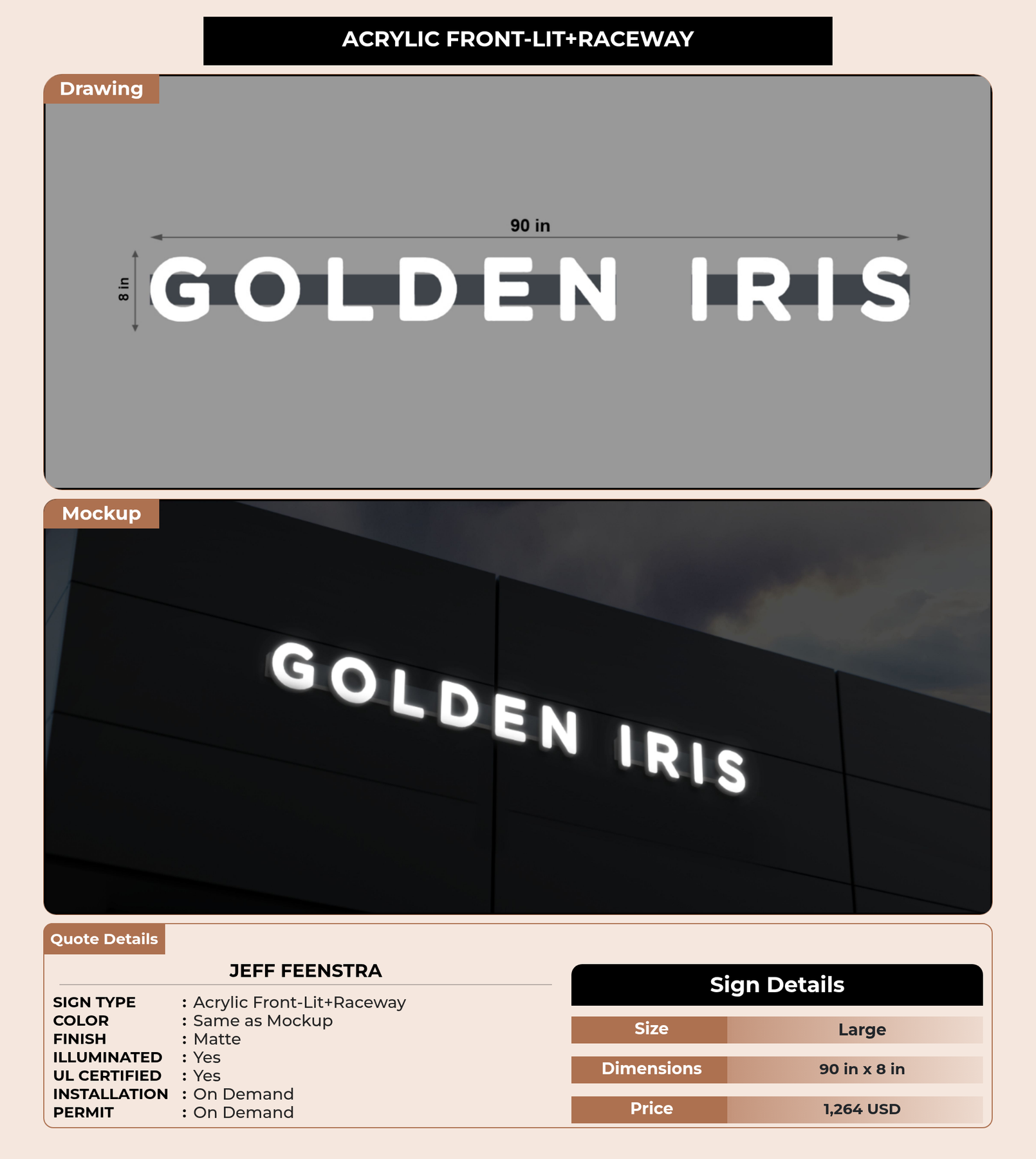 Crafted with premium material, this signage will elevate your business image, precisely mirroring your logo for a professional look.