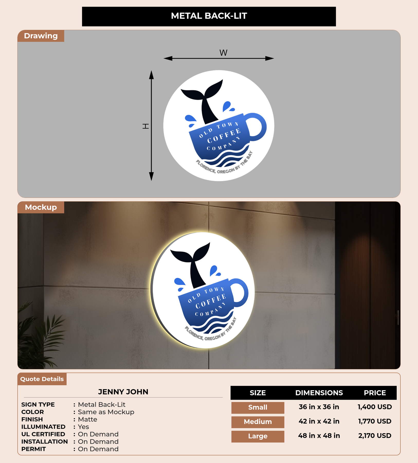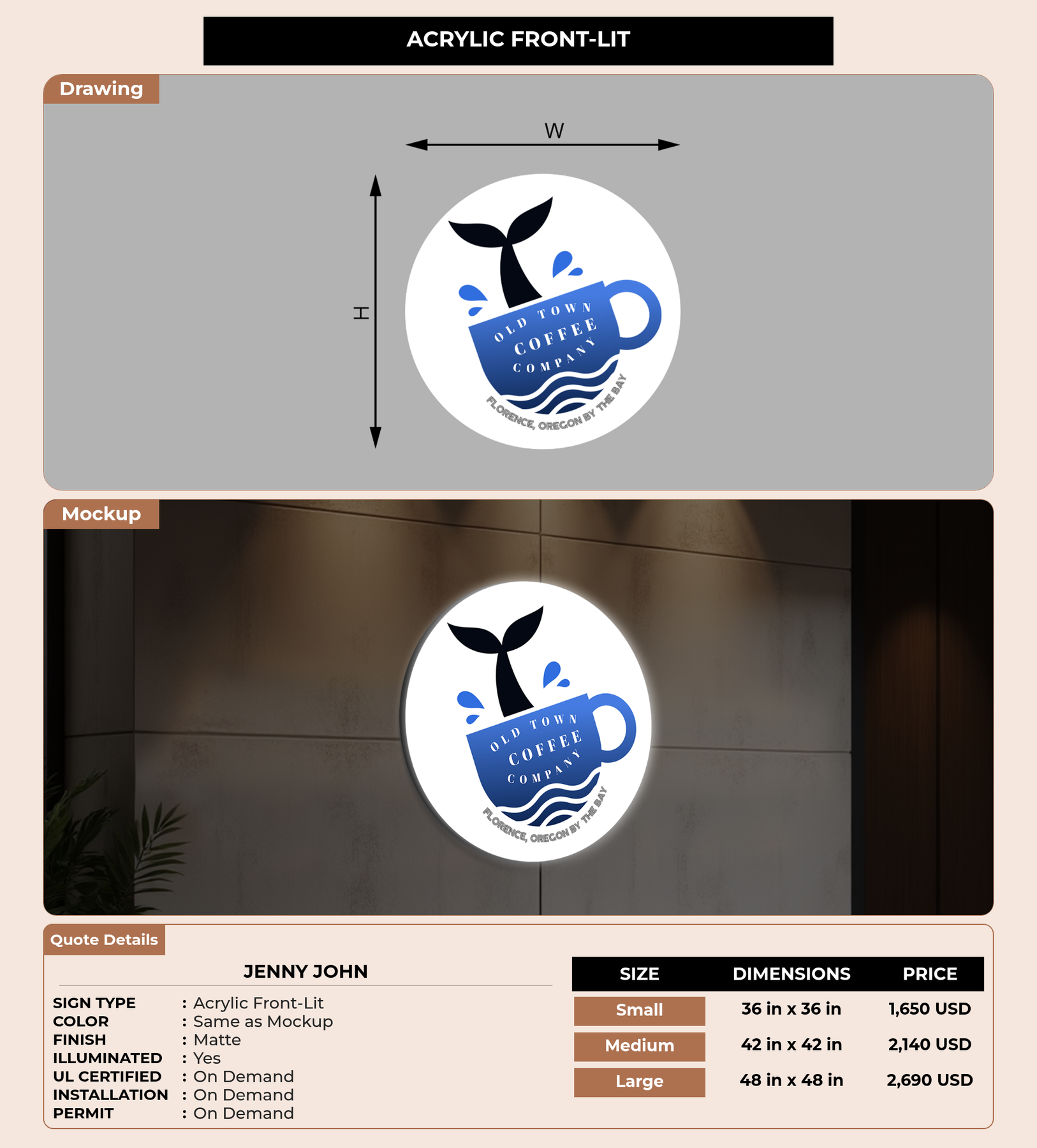 Crafted with premium material, this signage will elevate your business image, precisely mirroring your logo for a professional look.