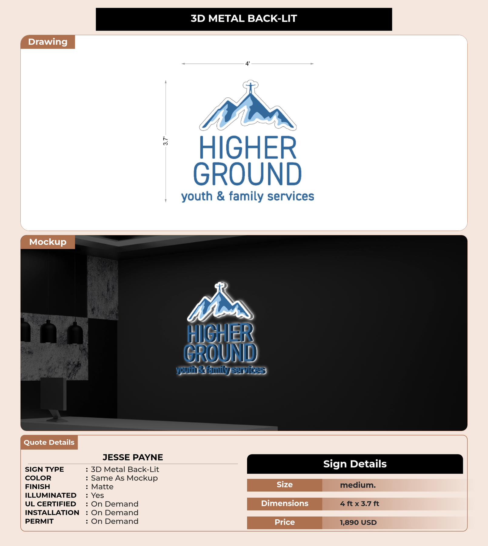 Eye-catching custom 3D sign for Jesse Payne