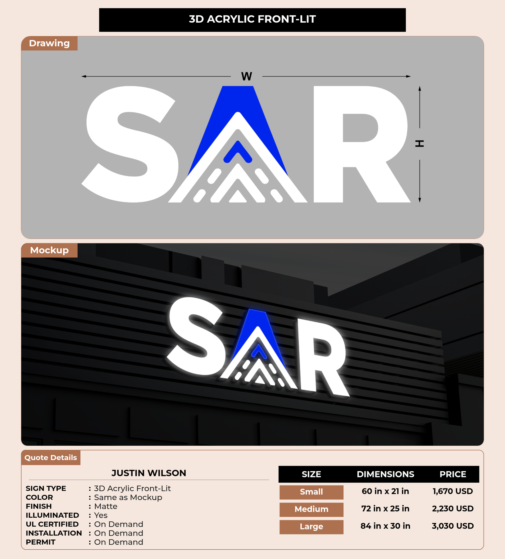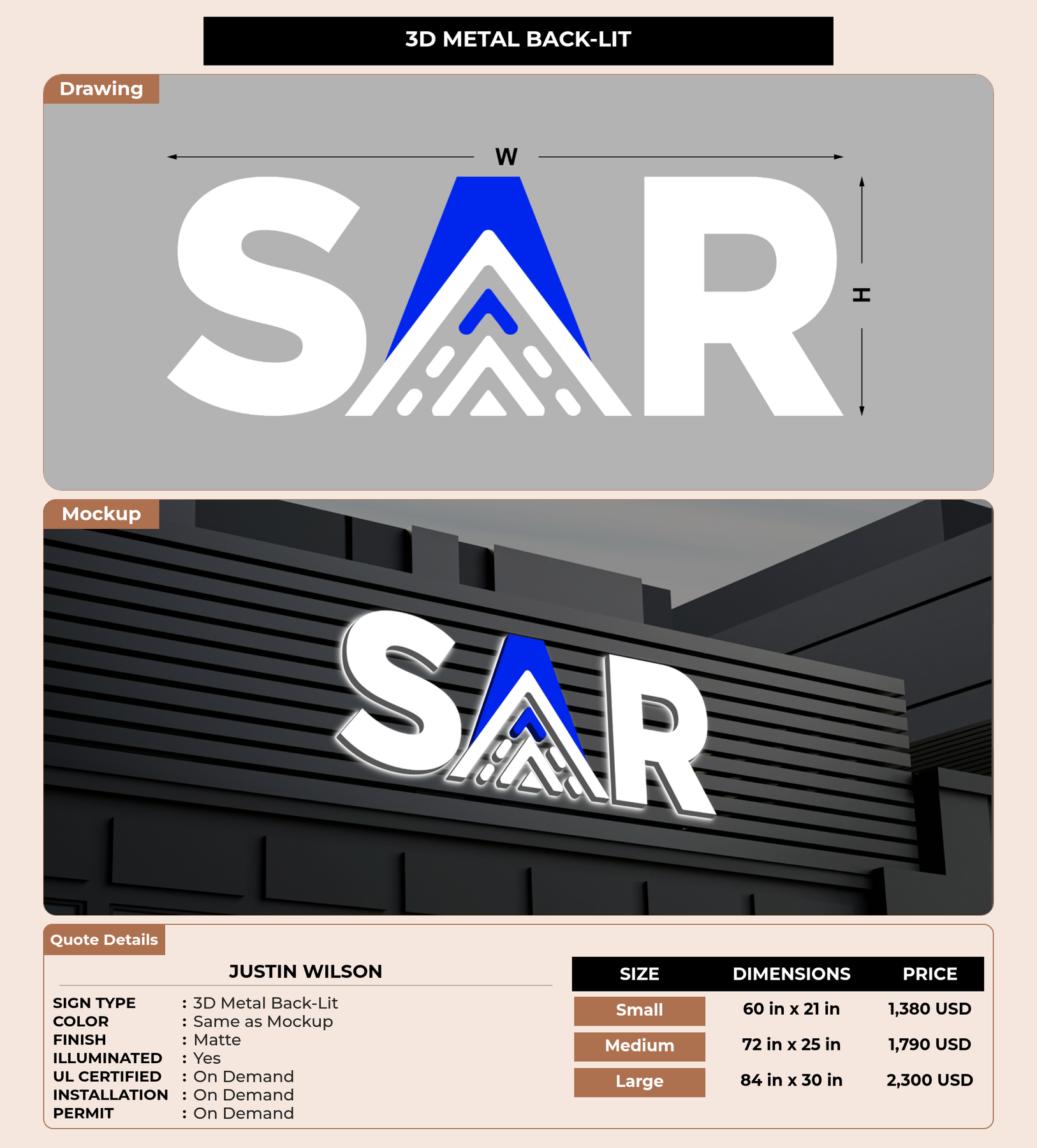 Enhance your business presence with our expertly crafted signage, made from top-quality material, to ensure longevity and durability. Fully customizable to reflect your unique brand identity, our signage offers a professional and polished appearance. Easy to install and low maintenance, it’s the perfect addition to any business setting. Trust us to deliver a product that not only meets but exceeds your expectations.