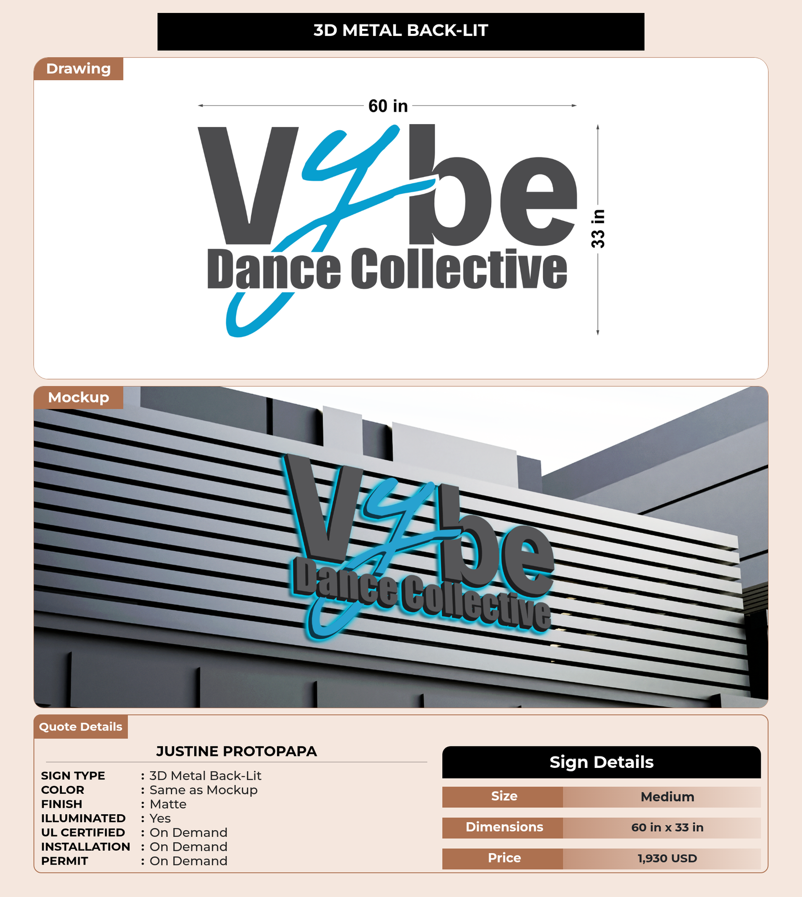 Eye-catching custom 3D sign for Justine Protopapa