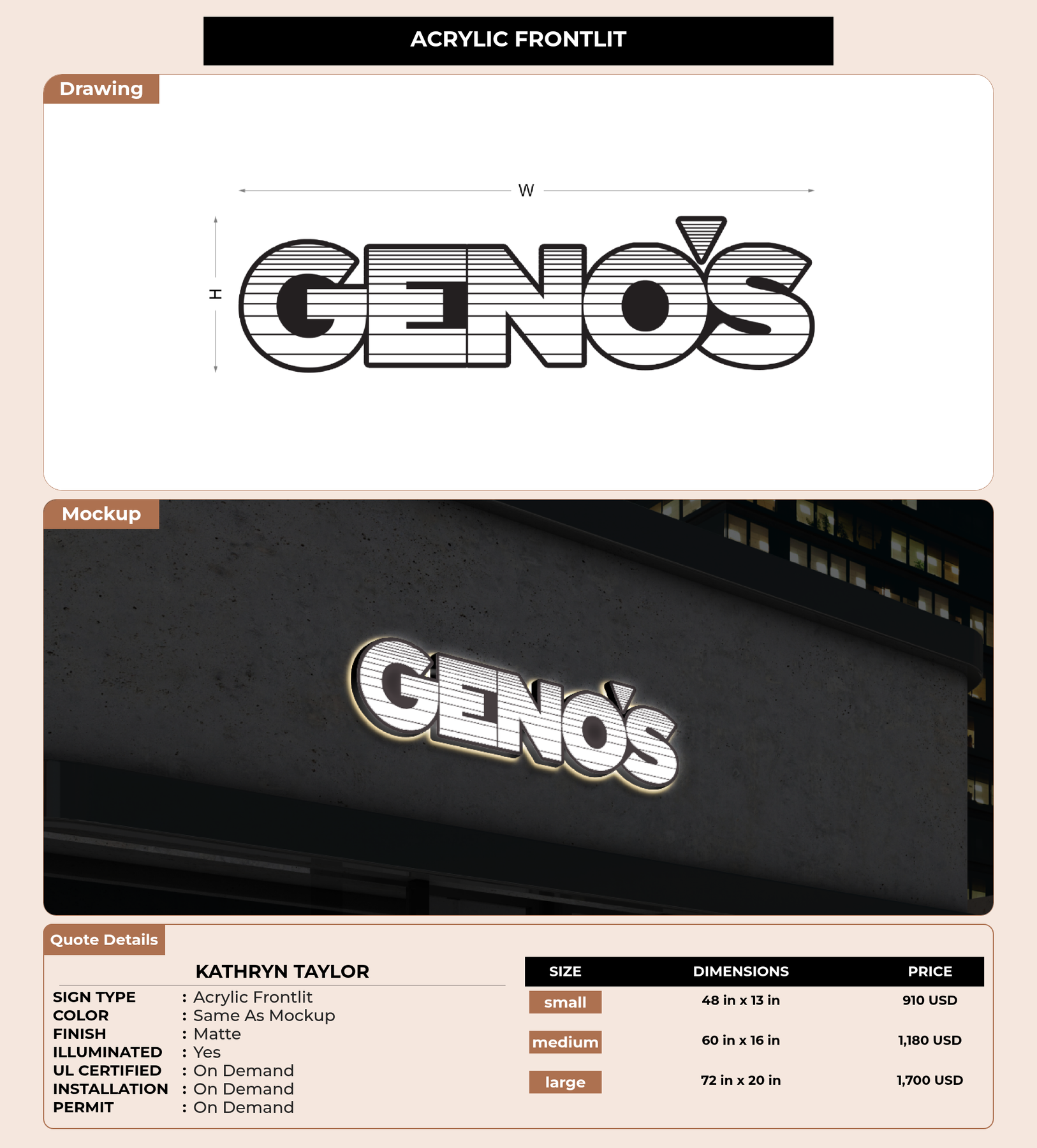 Enhance your business presence with our expertly crafted signage, made from top-quality material, to ensure longevity and durability. Fully customizable to reflect your unique brand identity, our signage offers a professional and polished appearance. Easy to install and low maintenance, it’s the perfect addition to any business setting. Trust us to deliver a product that not only meets but exceeds your expectations.