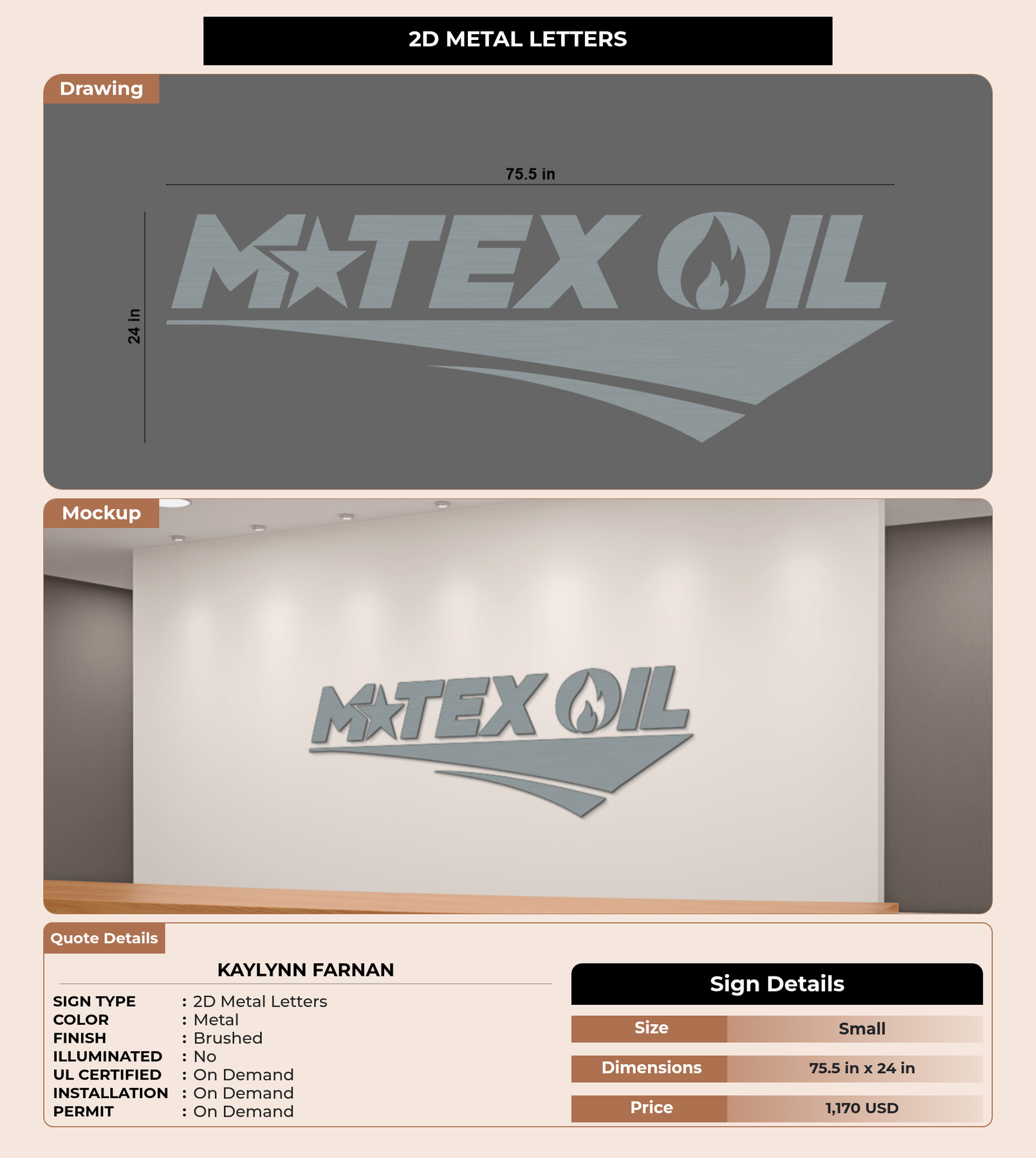 Enhance your business presence with our expertly crafted signage, made from top-quality material, to ensure longevity and durability. Fully customizable to reflect your unique brand identity, our signage offers a professional and polished appearance. Easy to install and low maintenance, it’s the perfect addition to any business setting. Trust us to deliver a product that not only meets but exceeds your expectations.