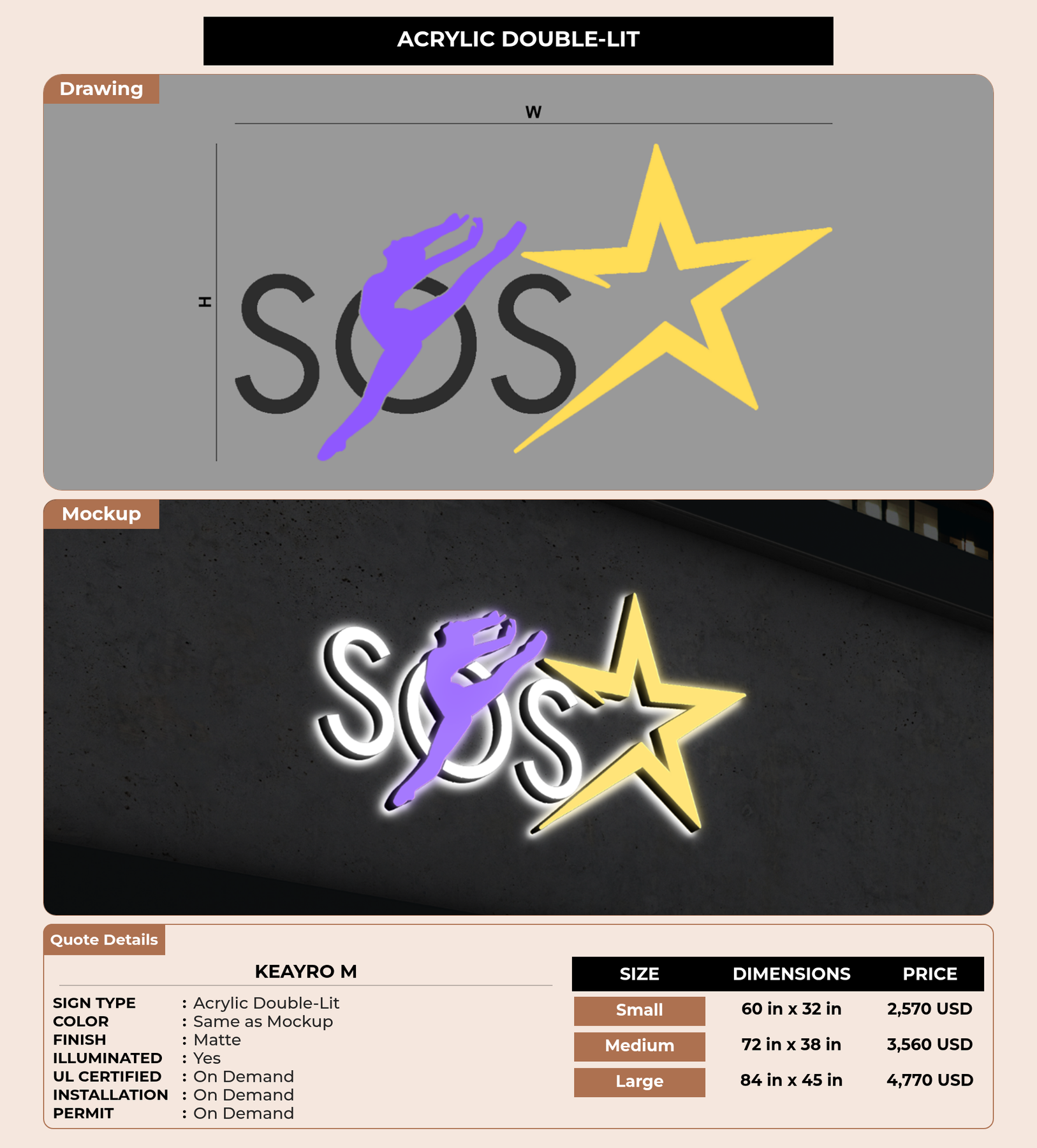 Eye-catching custom 3D sign for KeAyro m