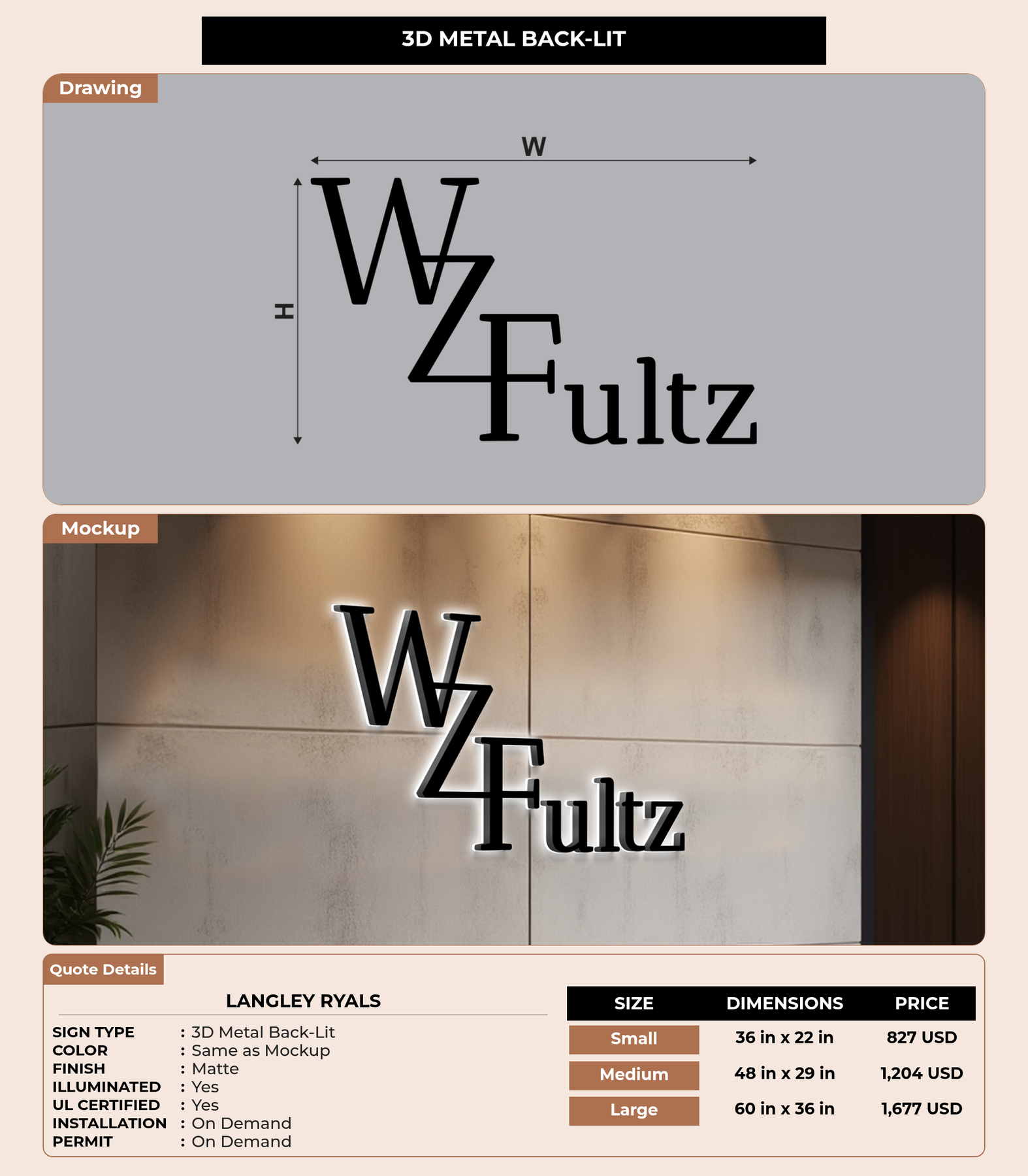 Crafted with premium material, this signage will elevate your business image, precisely mirroring your logo for a professional look.
