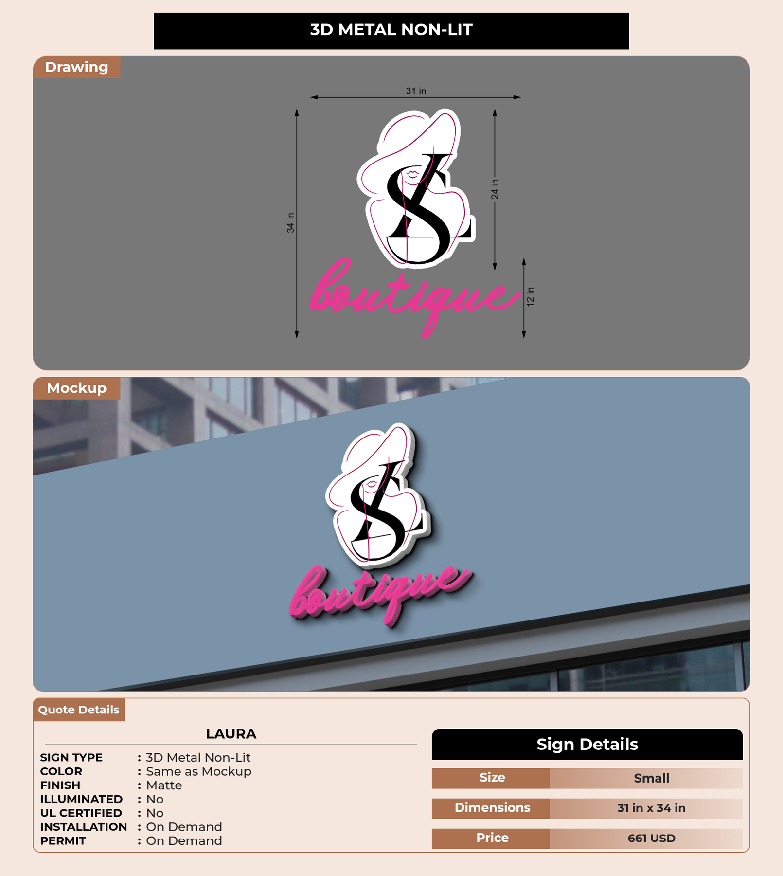 Crafted with premium material, this signage will elevate your business image, precisely mirroring your logo for a professional look.