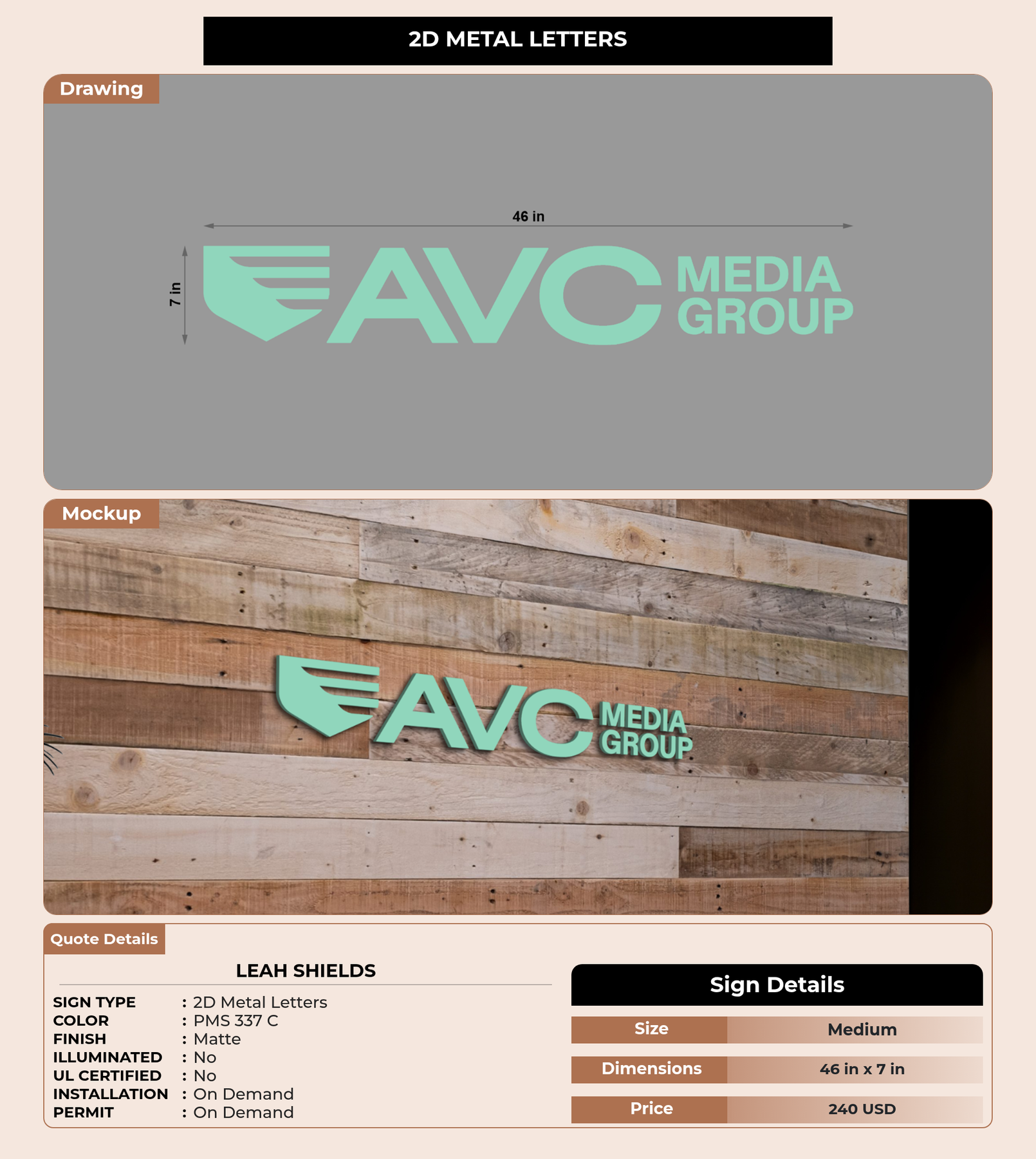 Crafted with premium material, this signage will elevate your business image, precisely mirroring your logo for a professional look.