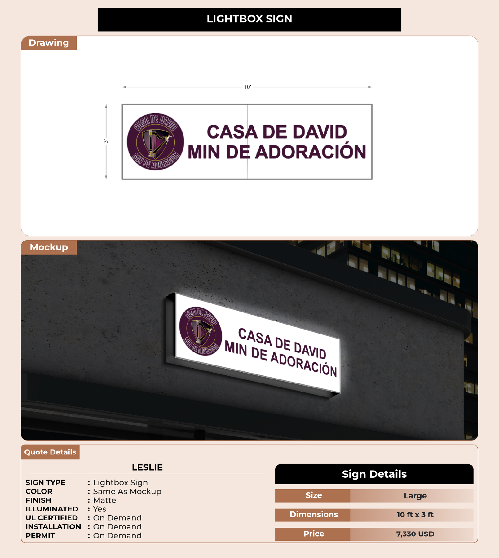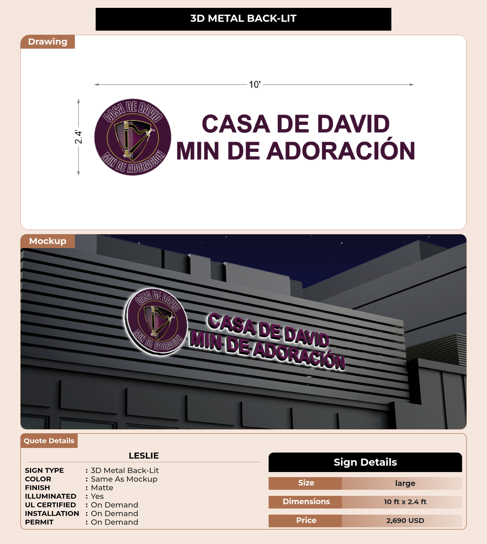 CUSTOM MOCKUP SIGN FOR Leslie