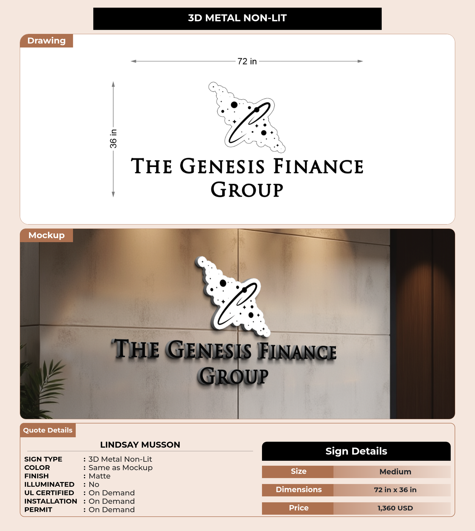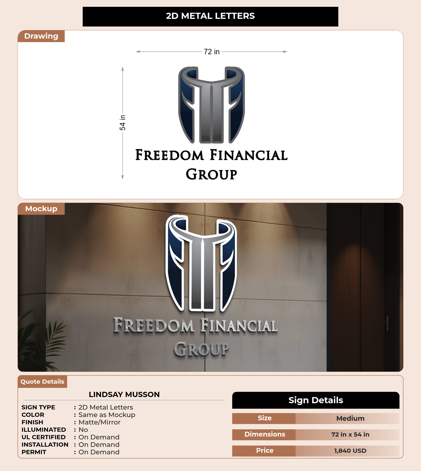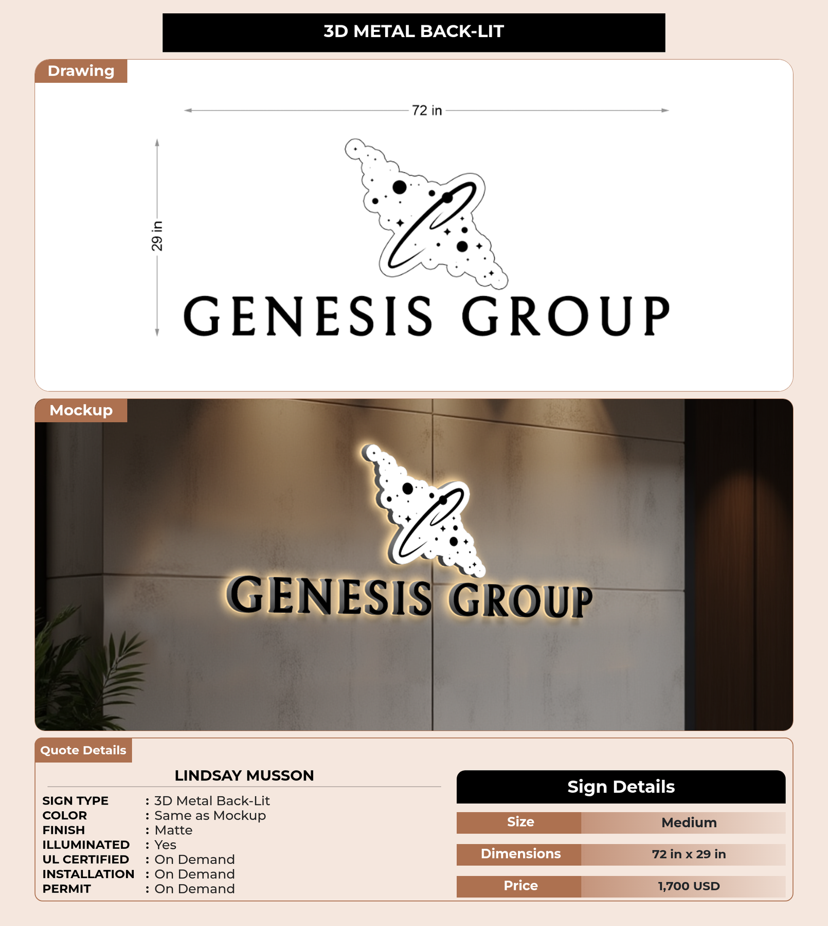Eye-catching custom 3D sign for Lindsay Musson