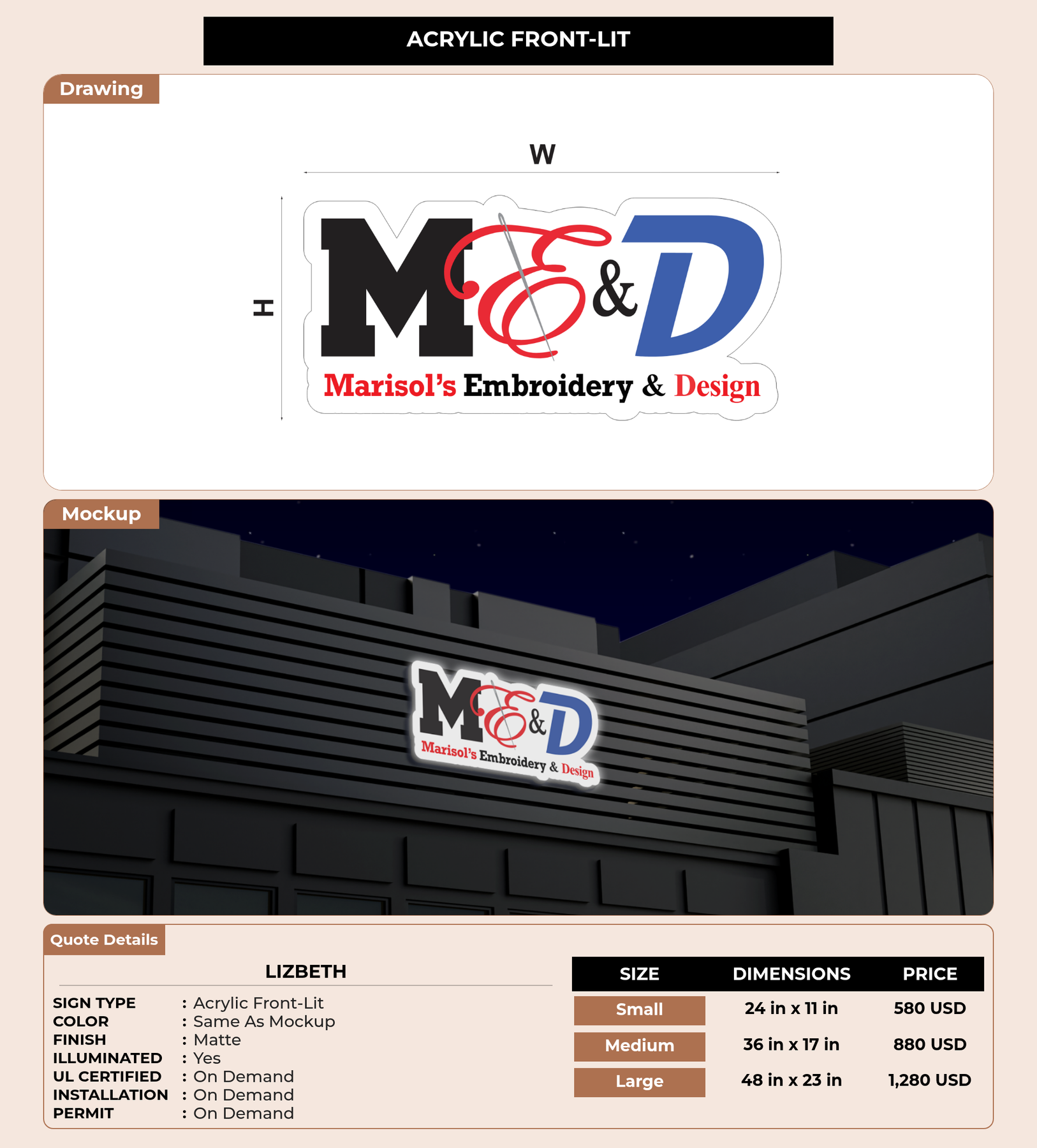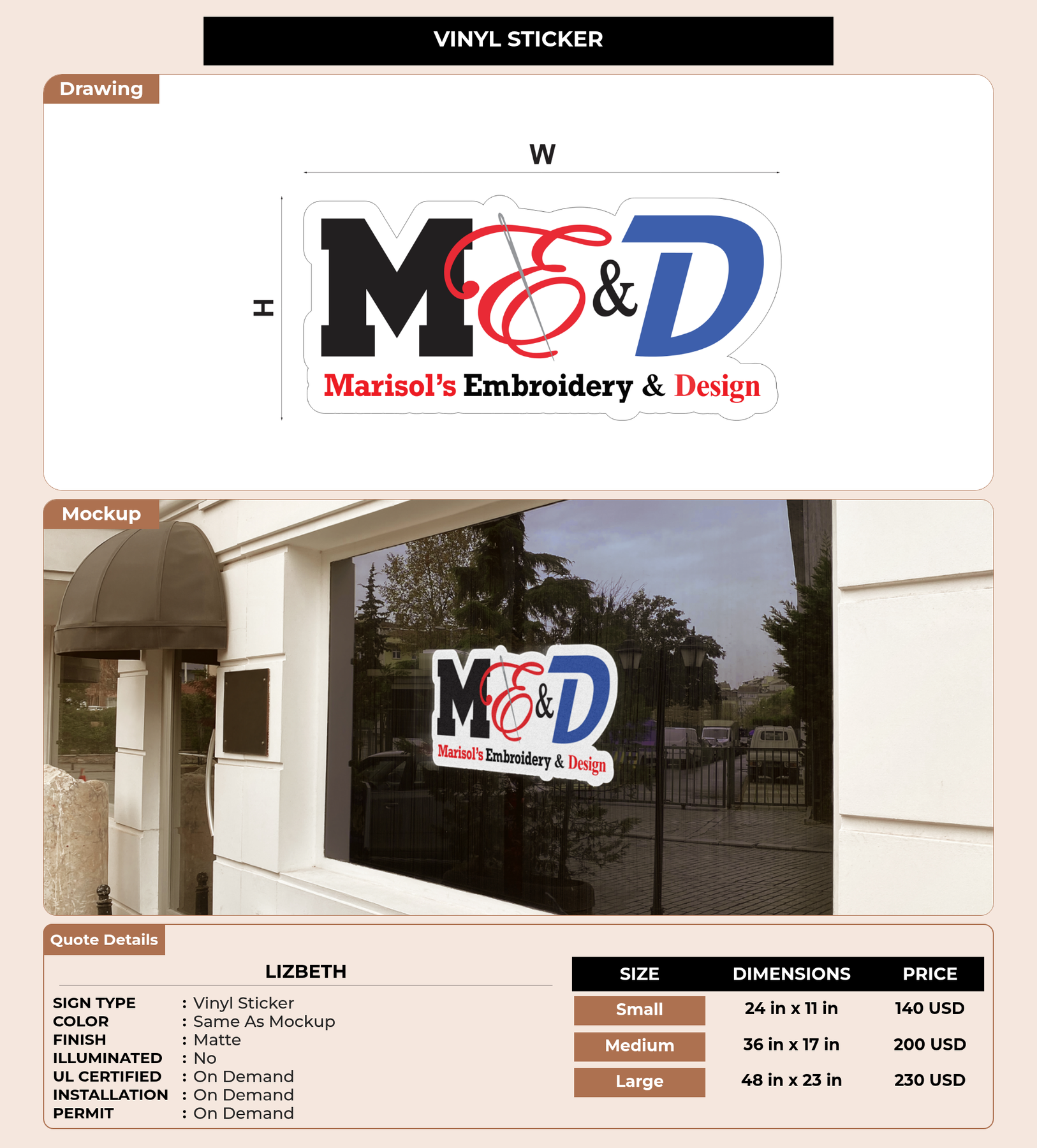 CUSTOM MOCKUP SIGN FOR Lizbeth