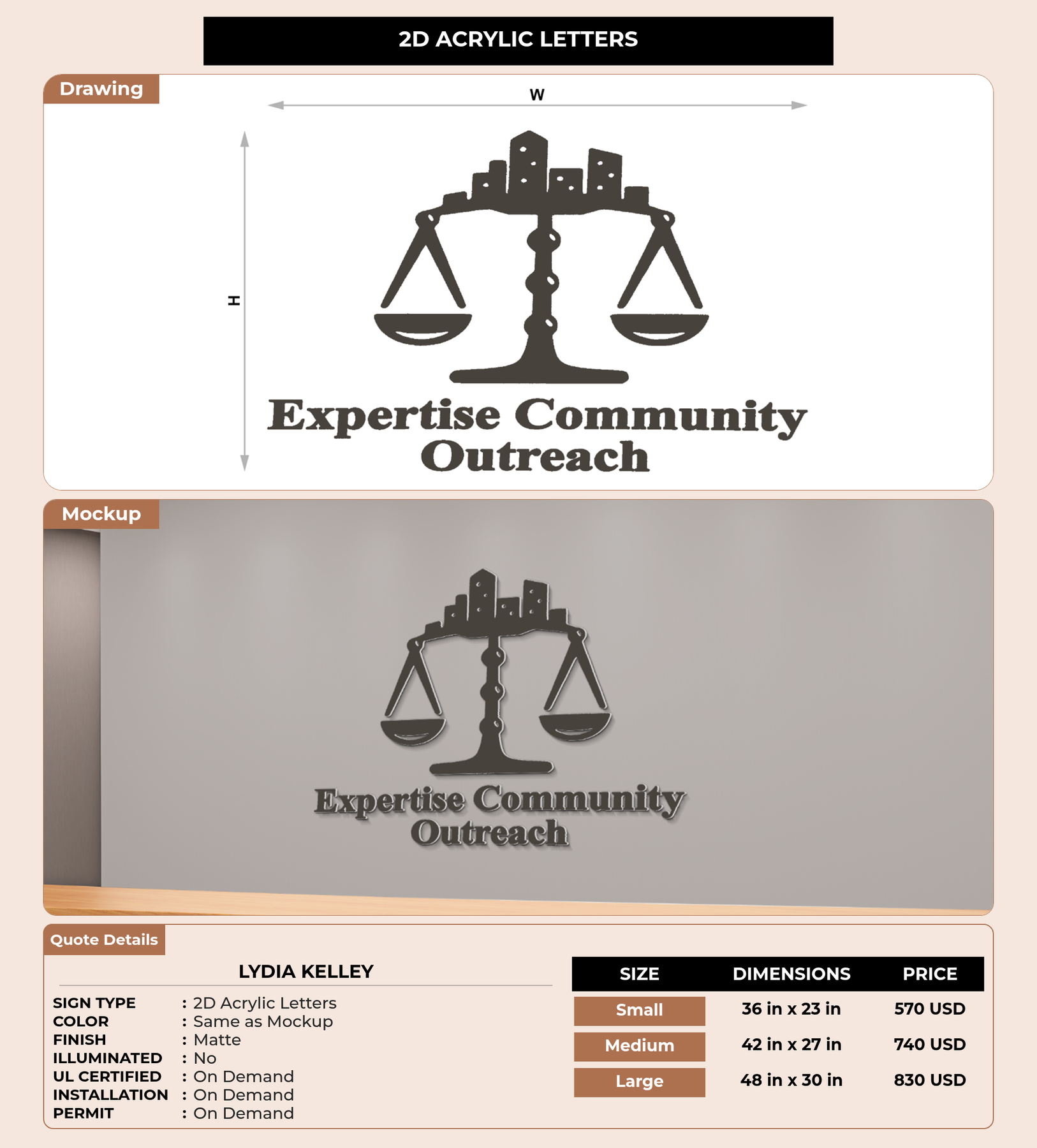 CUSTOM MOCKUP SIGN FOR Lydia Kelley