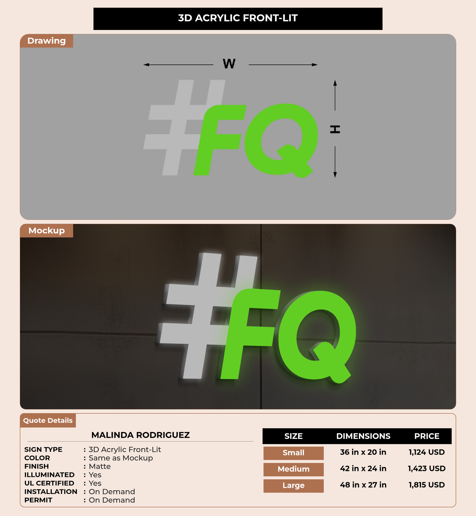 Eye-catching custom 3D sign for Malinda Rodriguez