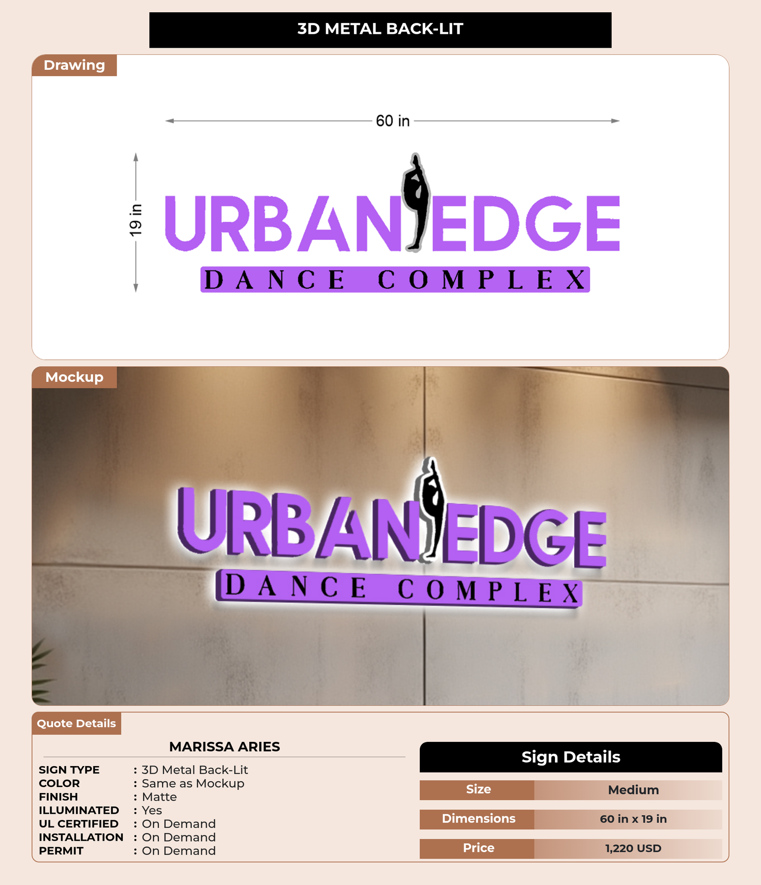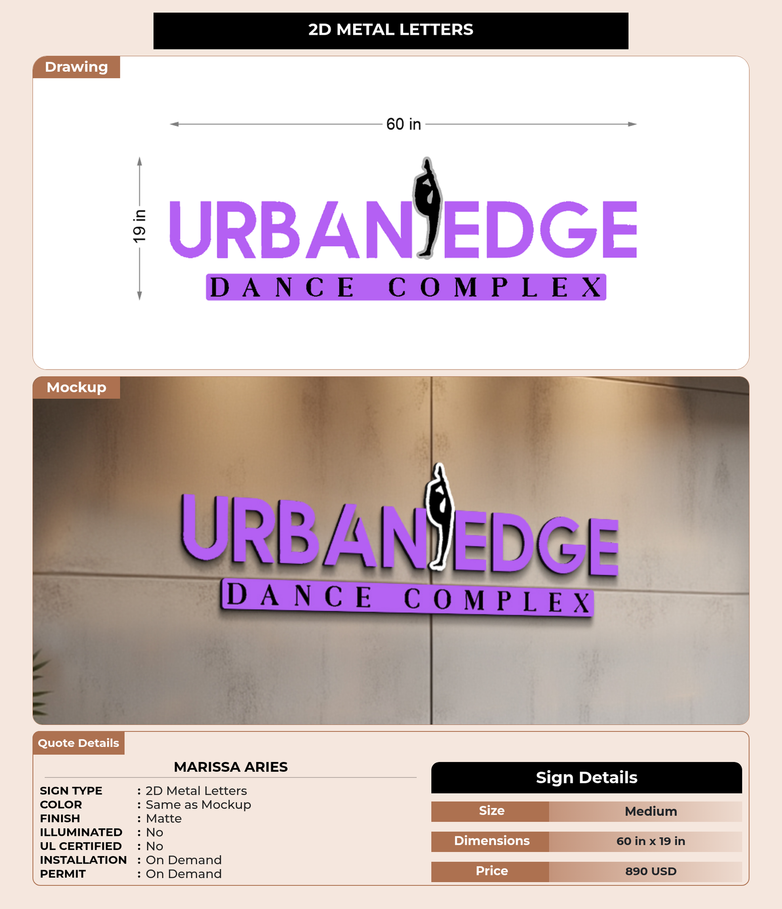 Eye-catching custom 3D sign for Marissa Aries