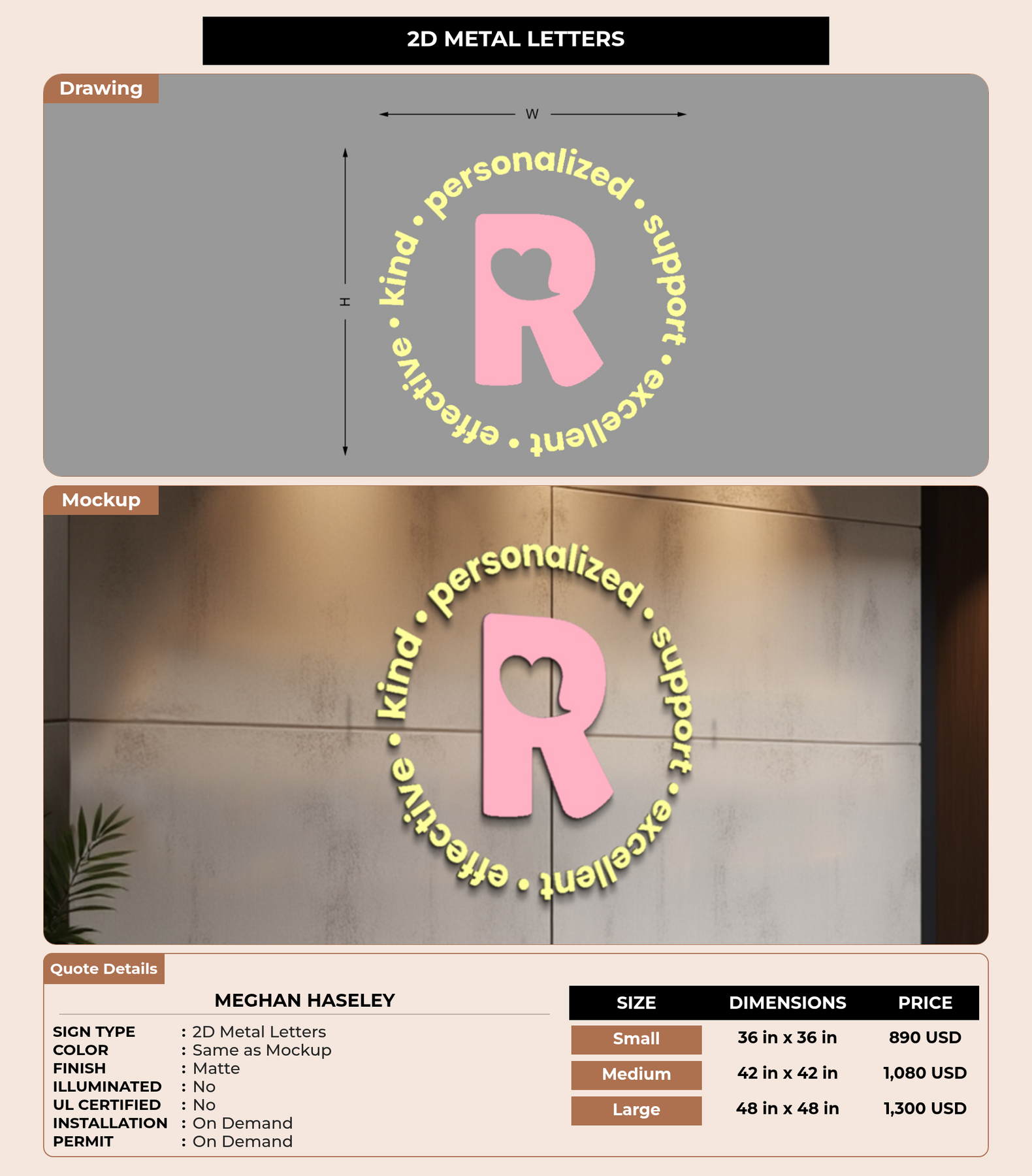 Crafted with premium material, this signage will elevate your business image, precisely mirroring your logo for a professional look.