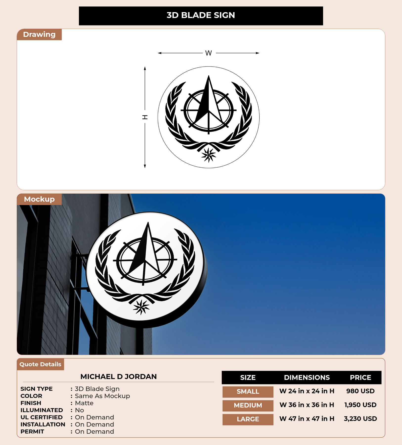 Eye-catching custom 3D sign for MICHAEL D JORDAN
