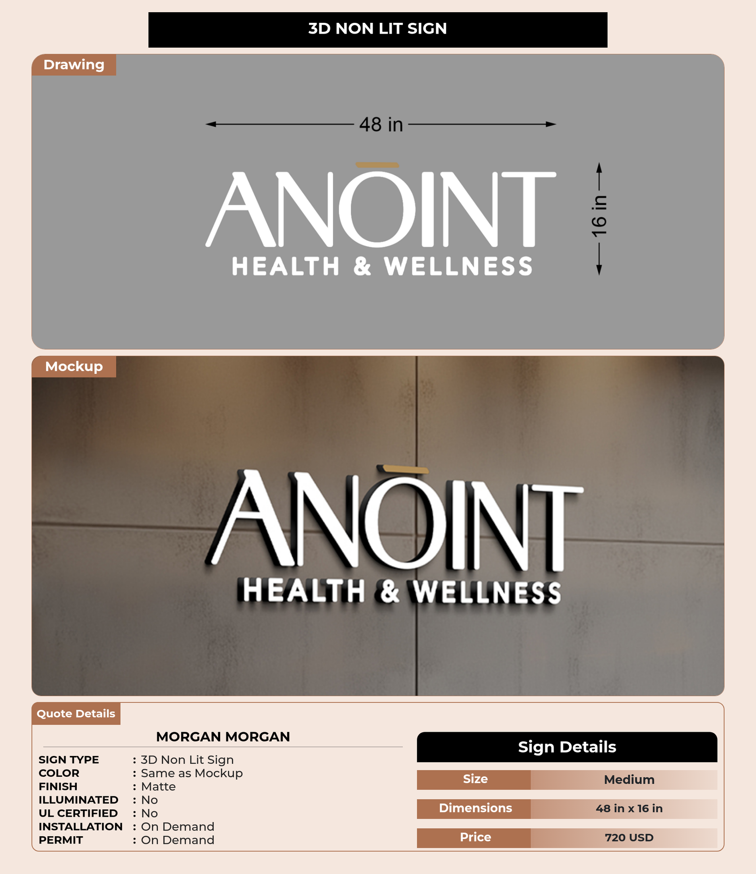 Enhance your business presence with our expertly crafted signage, made from top-quality material, to ensure longevity and durability. Fully customizable to reflect your unique brand identity, our signage offers a professional and polished appearance. Easy to install and low maintenance, it’s the perfect addition to any business setting. Trust us to deliver a product that not only meets but exceeds your expectations.