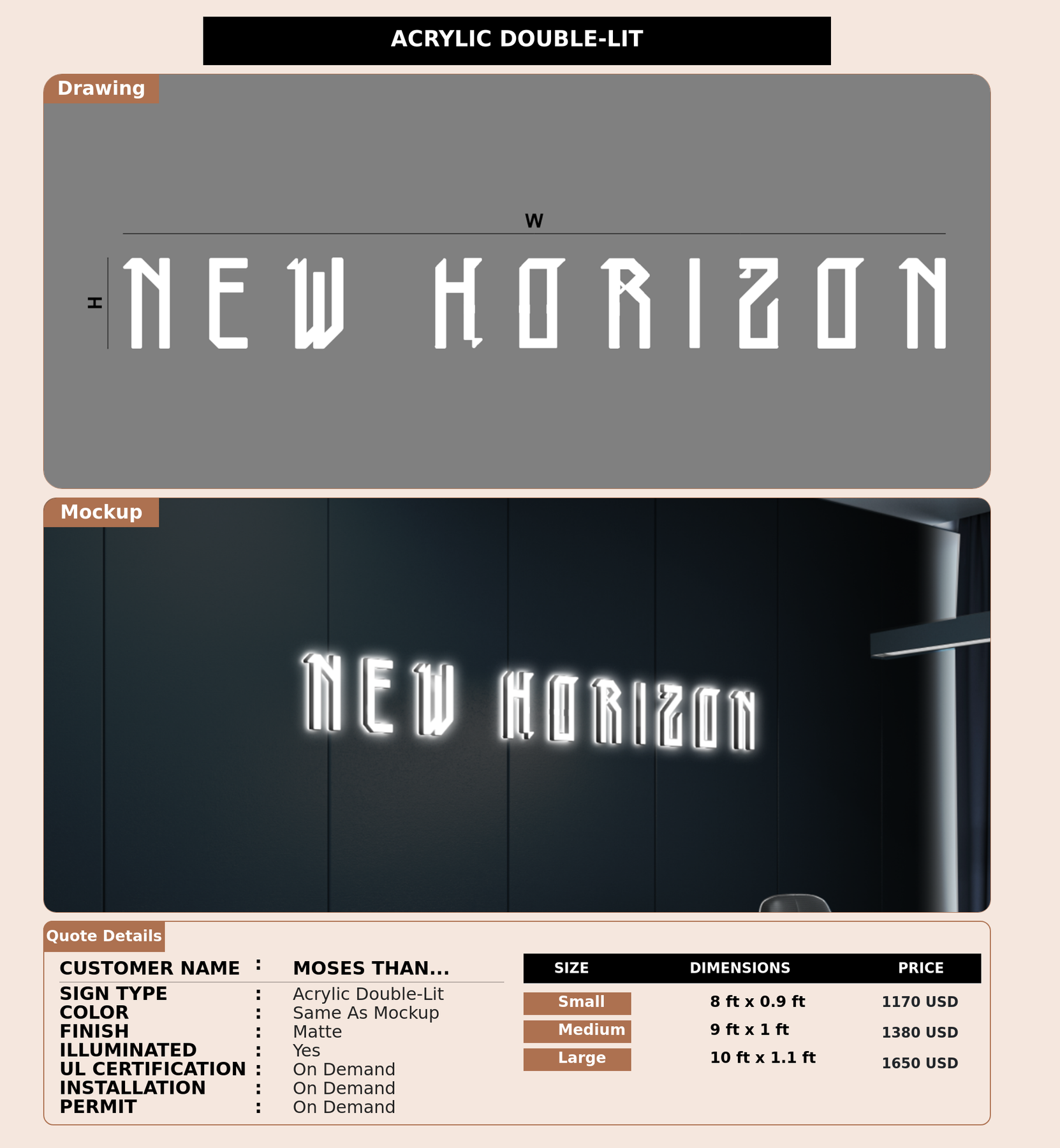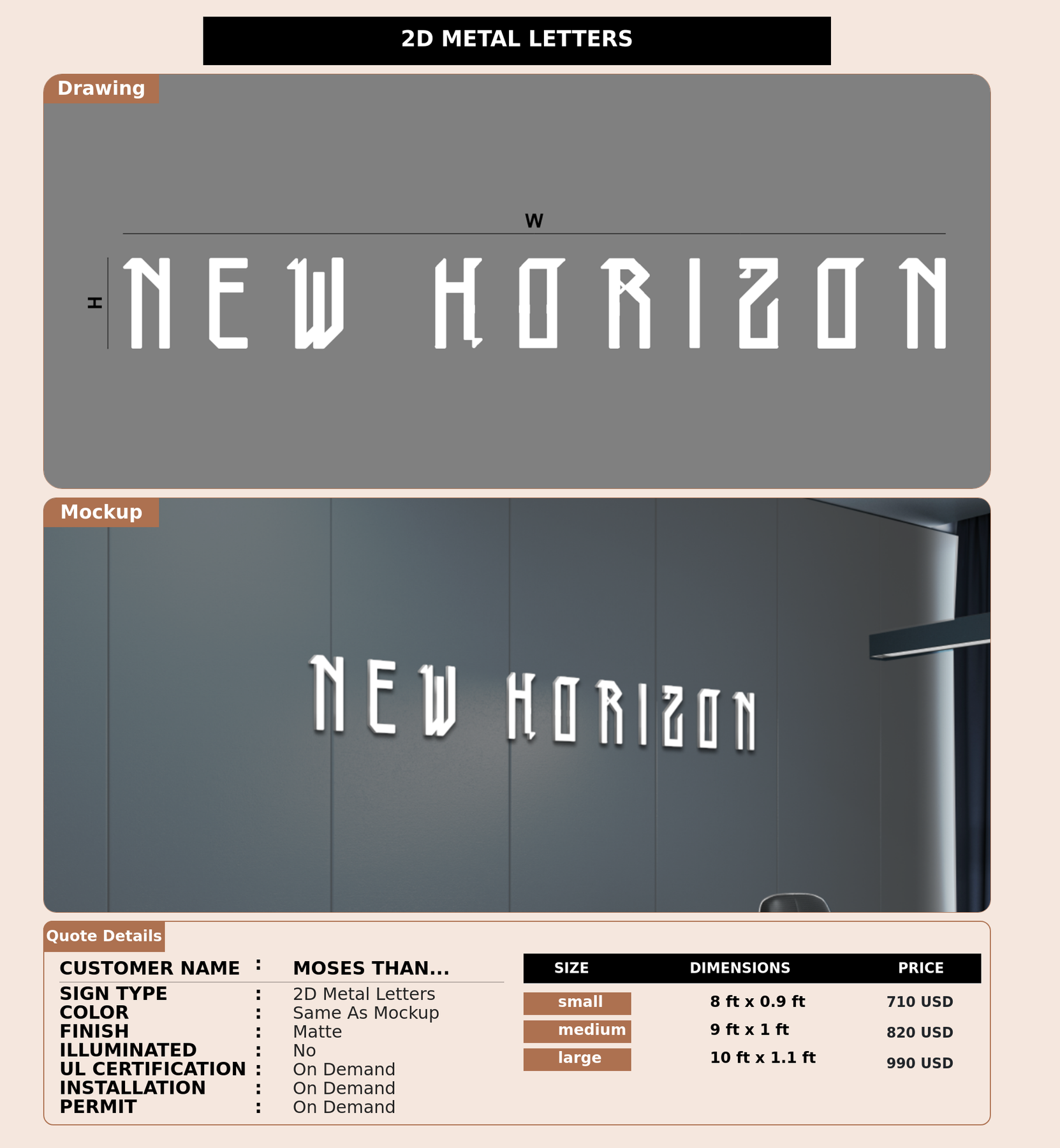 Crafted with premium material, this signage will elevate your business image, precisely mirroring your logo for a professional look.