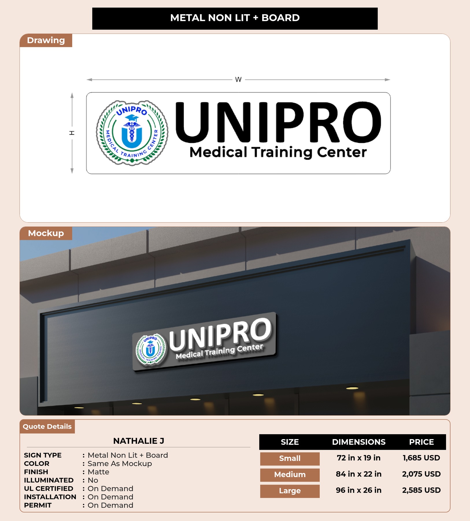Enhance your business presence with our expertly crafted signage, made from top-quality material, to ensure longevity and durability. Fully customizable to reflect your unique brand identity, our signage offers a professional and polished appearance. Easy to install and low maintenance, it’s the perfect addition to any business setting. Trust us to deliver a product that not only meets but exceeds your expectations.