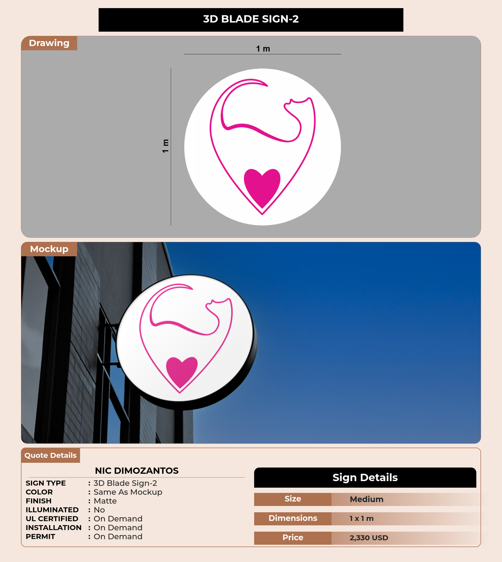 Eye-catching custom 3D sign for Nic Dimozantos