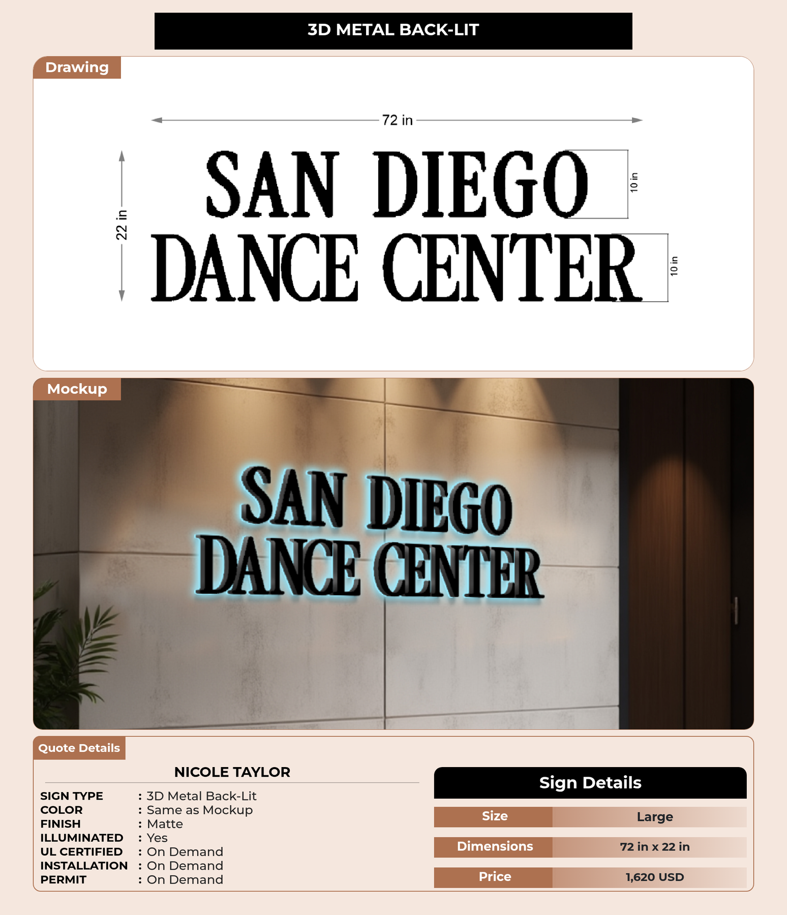 Crafted with premium material, this signage will elevate your business image, precisely mirroring your logo for a professional look.