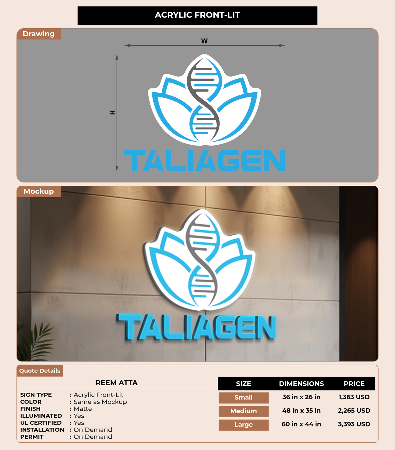 Crafted with premium material, this signage will elevate your business image, precisely mirroring your logo for a professional look.
