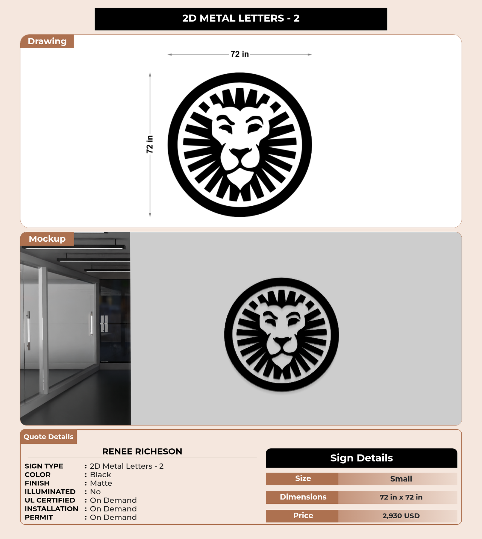 Crafted with premium material, this signage will elevate your business image, precisely mirroring your logo for a professional look.
