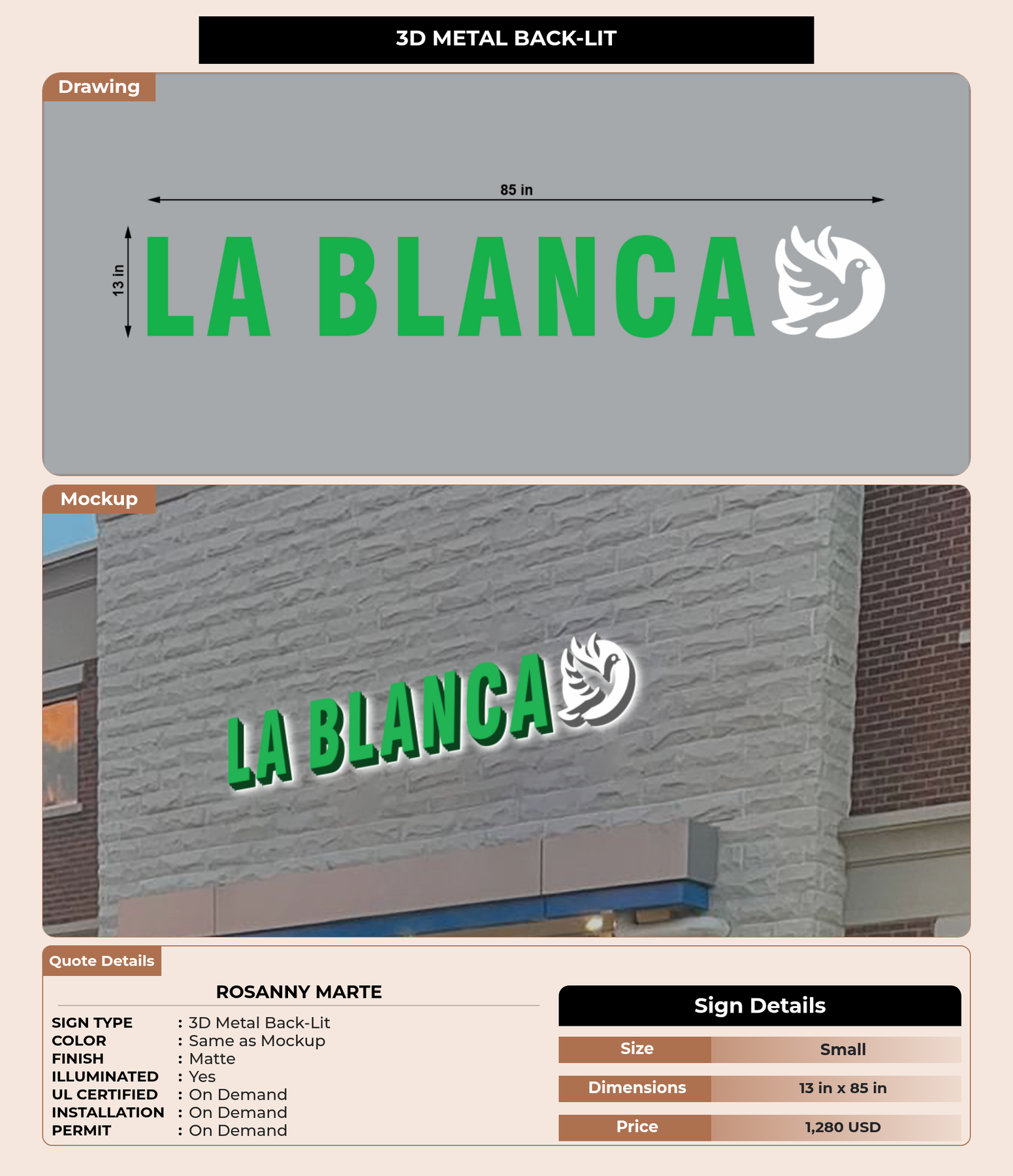 Eye-catching custom 3D sign for Rosanny Marte
