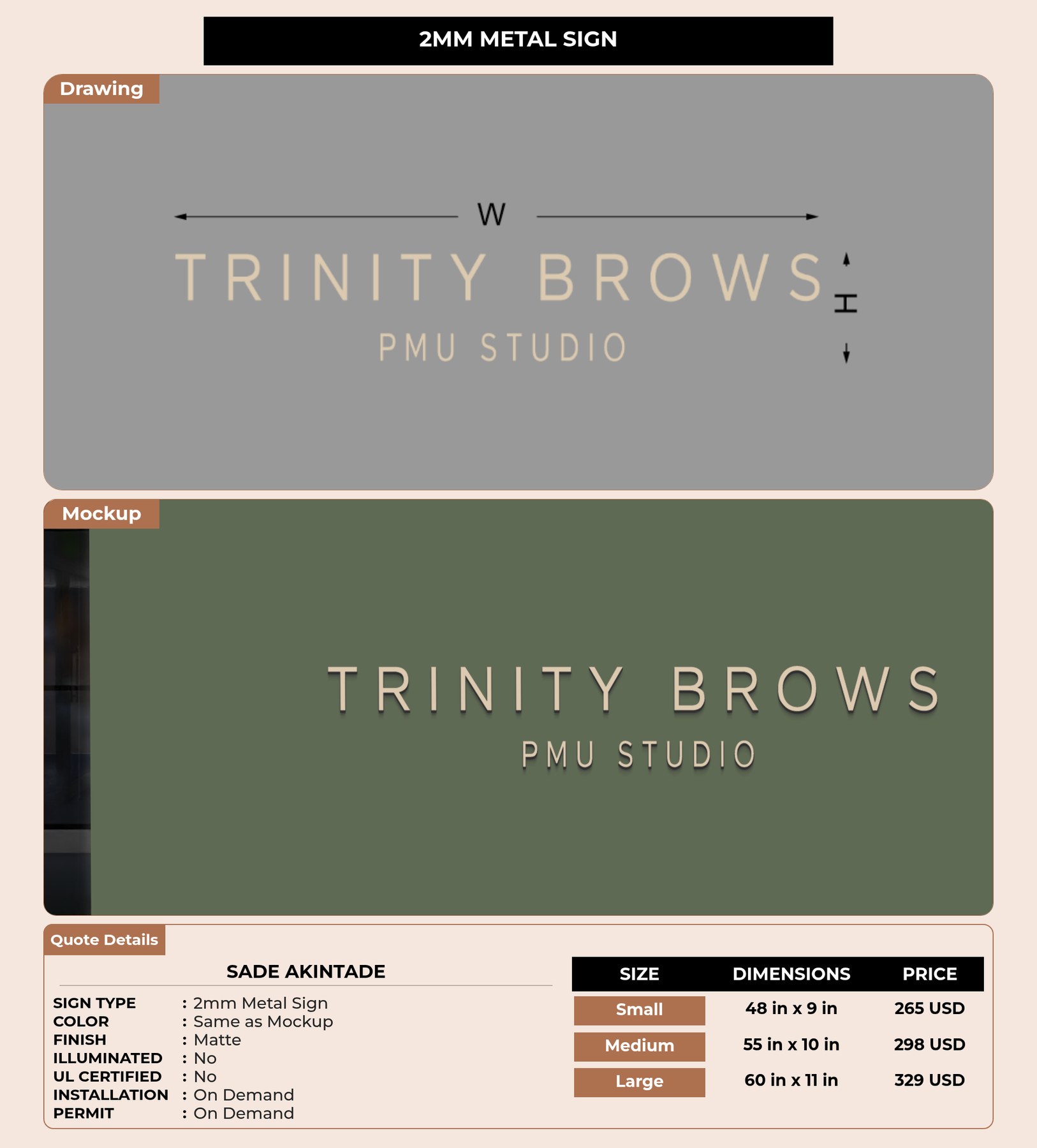 Enhance your business presence with our expertly crafted signage, made from top-quality material, to ensure longevity and durability. Fully customizable to reflect your unique brand identity, our signage offers a professional and polished appearance. Easy to install and low maintenance, it’s the perfect addition to any business setting. Trust us to deliver a product that not only meets but exceeds your expectations.