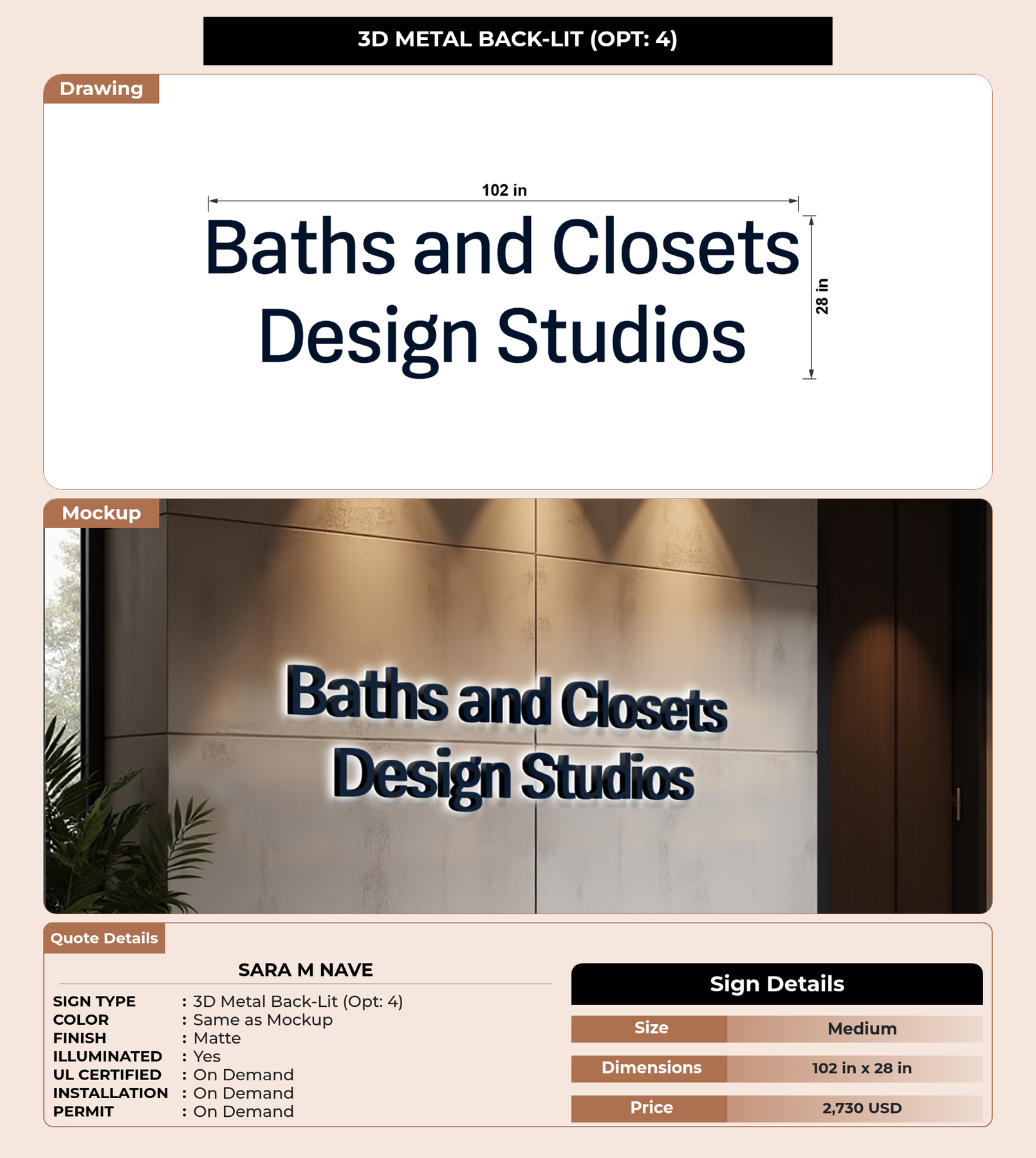 Crafted with premium material, this signage will elevate your business image, precisely mirroring your logo for a professional look.