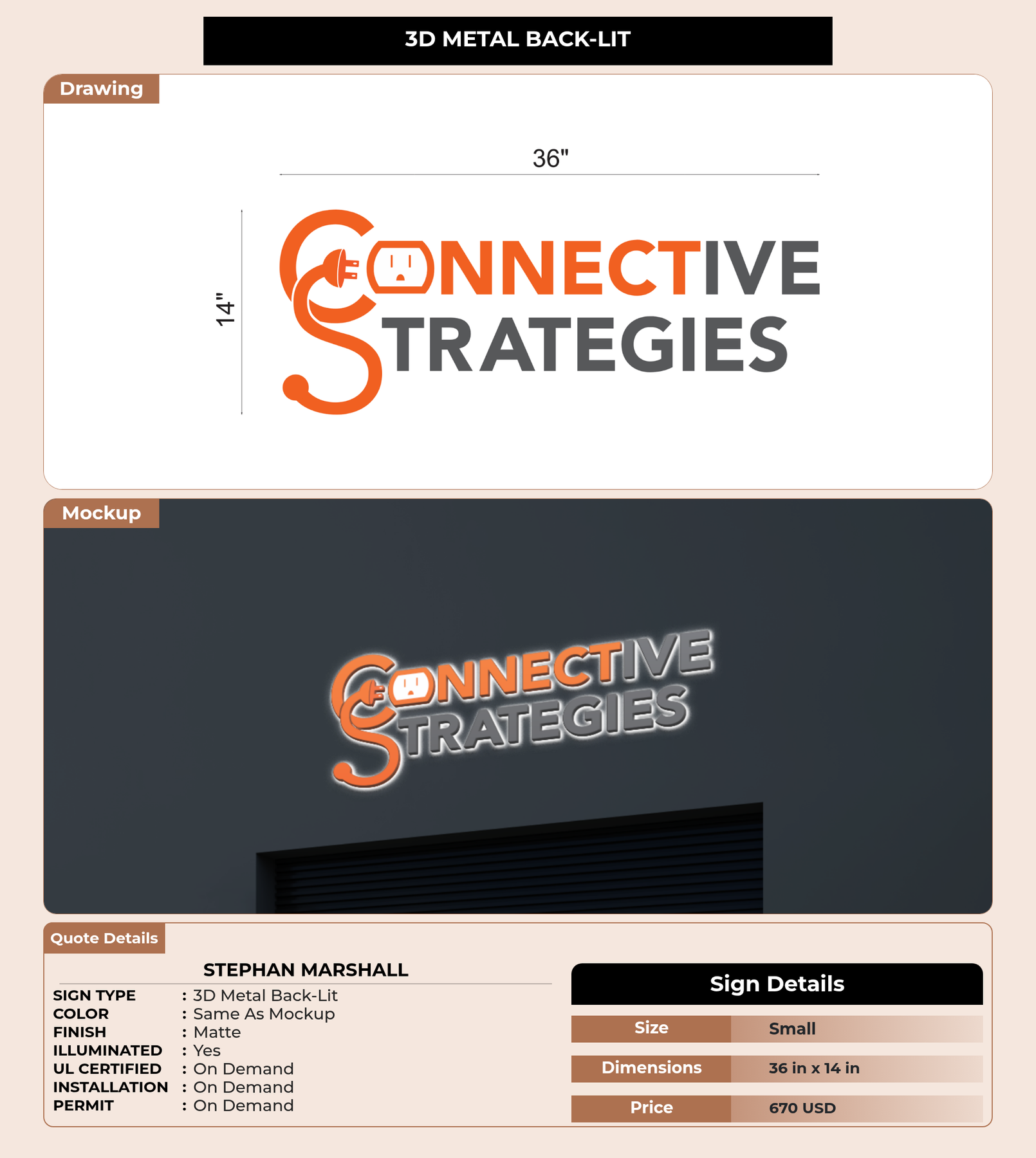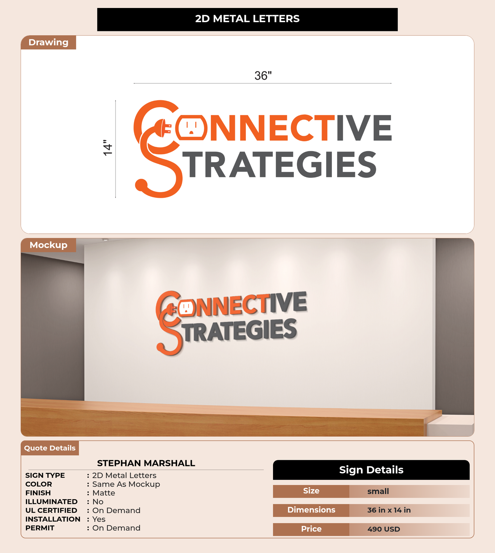 Eye-catching custom 3D sign for Stephan Marshall