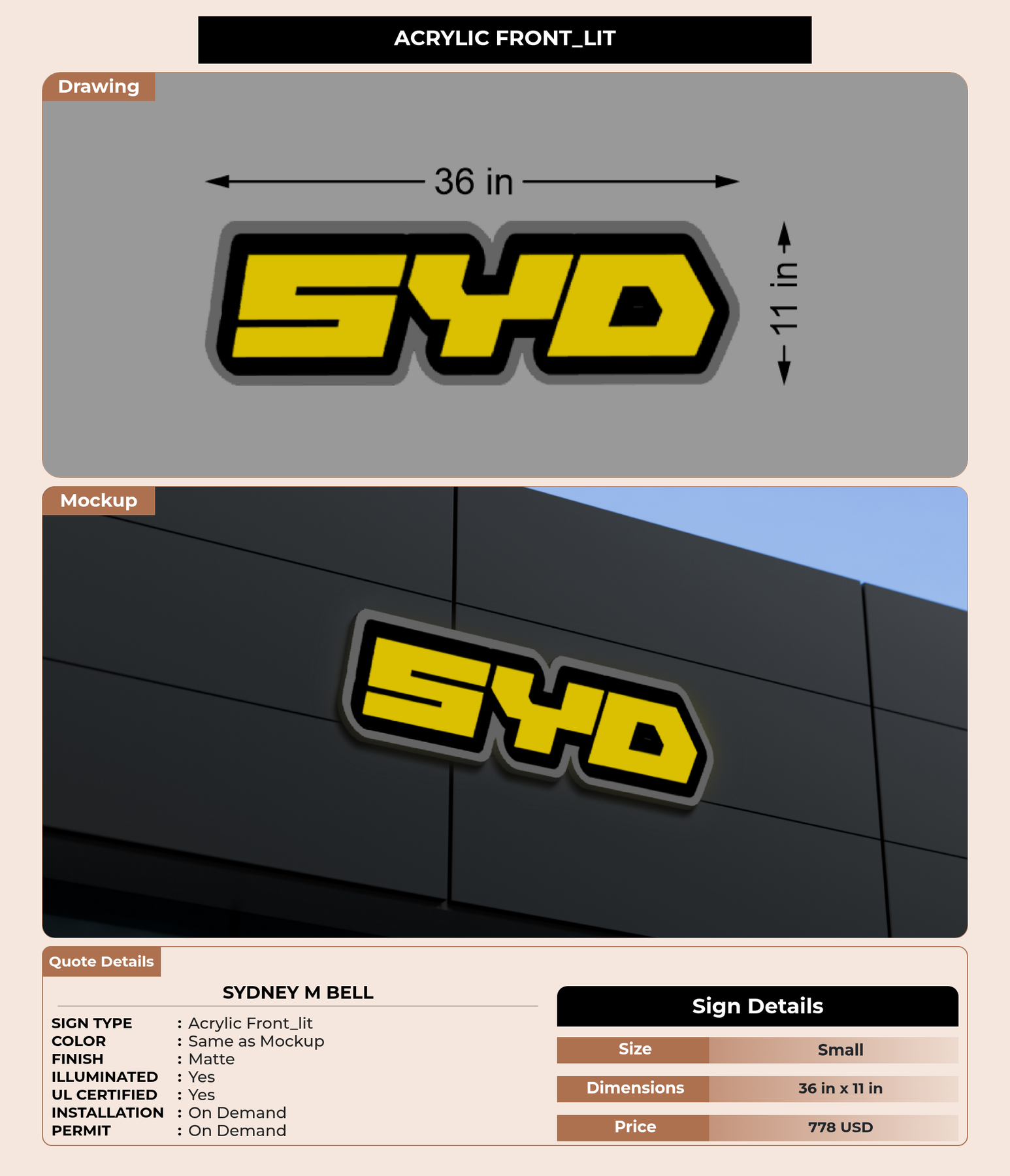 CUSTOM MOCKUP SIGN FOR SYDNEY M BELL