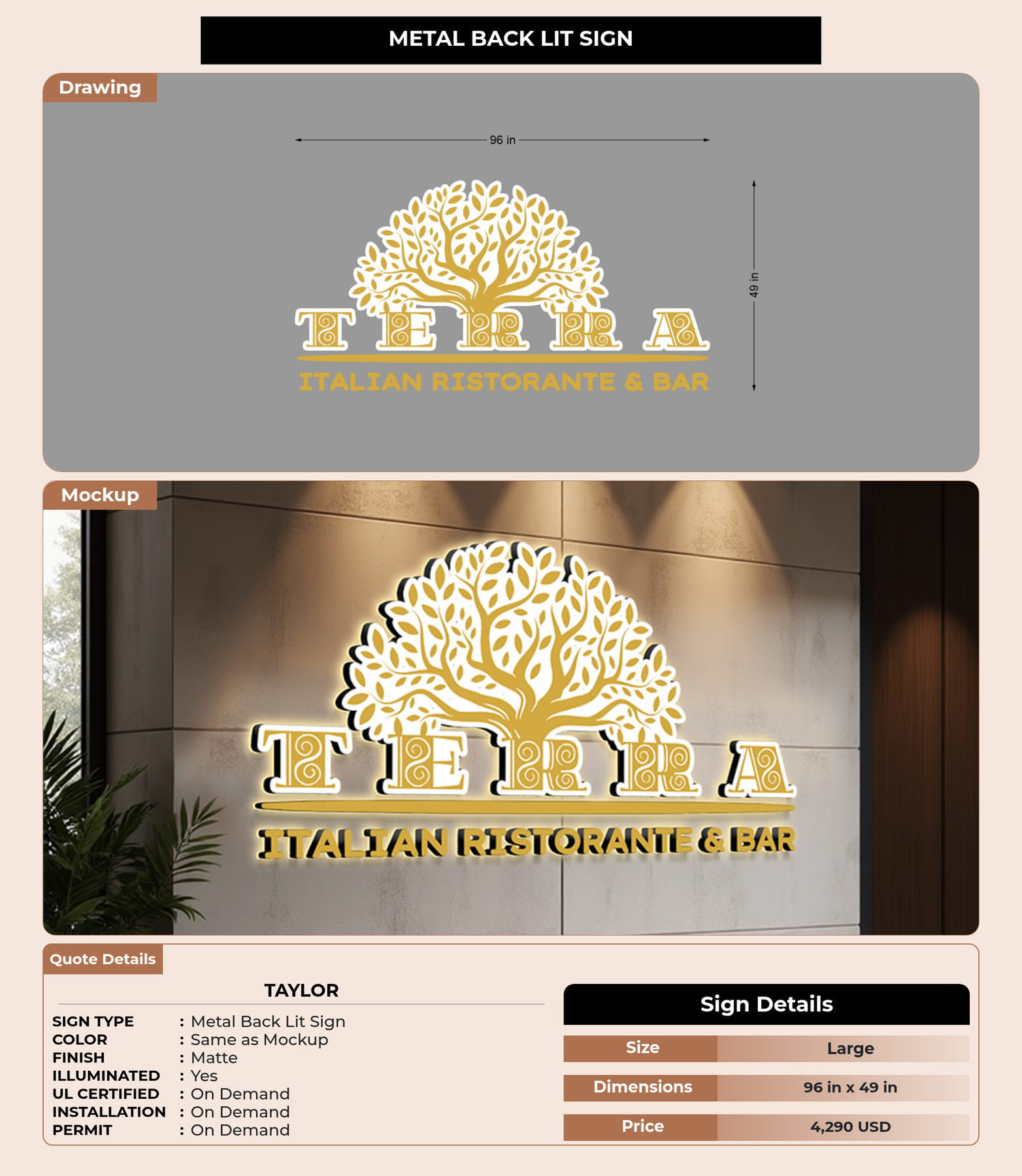 Crafted with premium material, this signage will elevate your business image, precisely mirroring your logo for a professional look.
