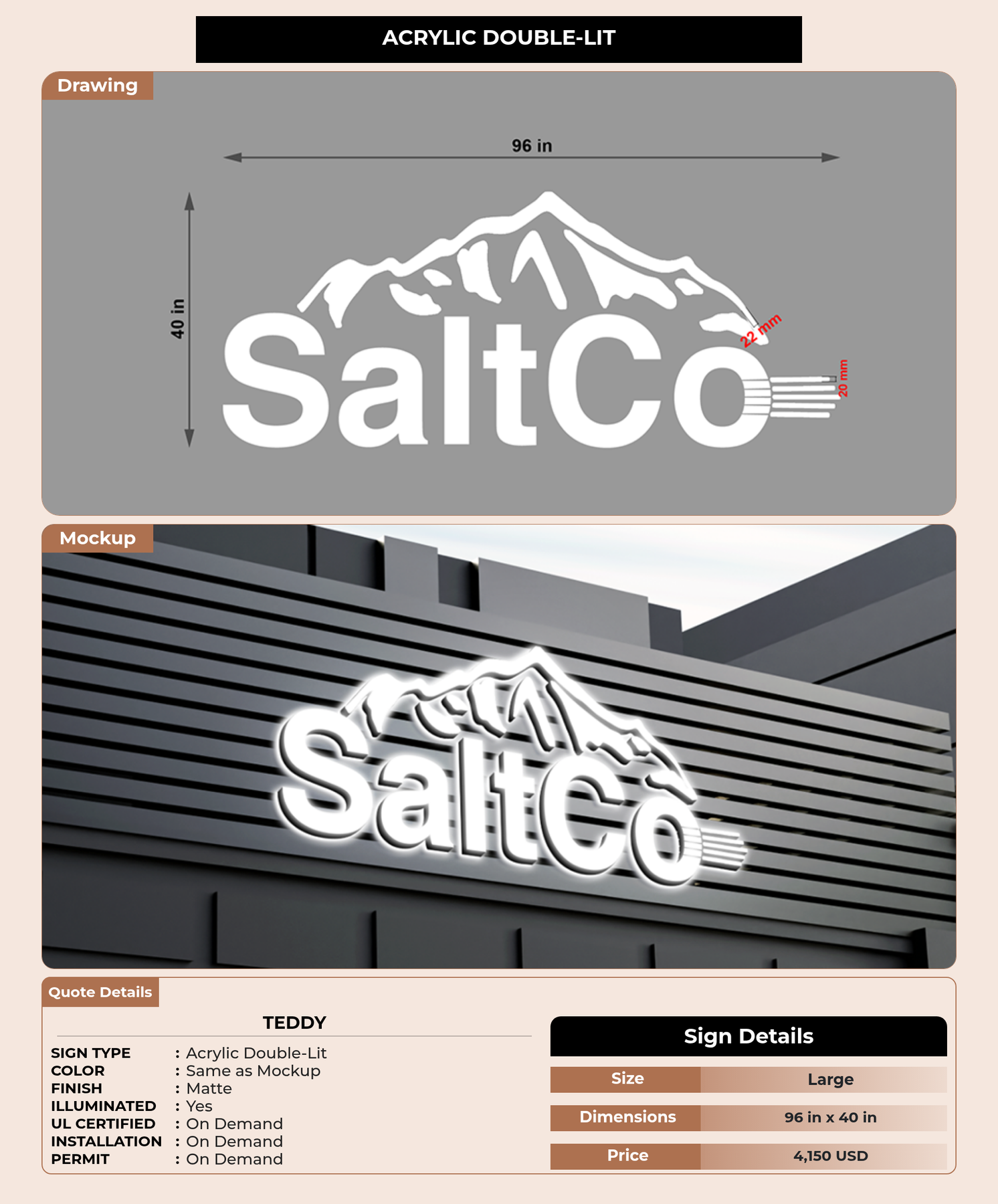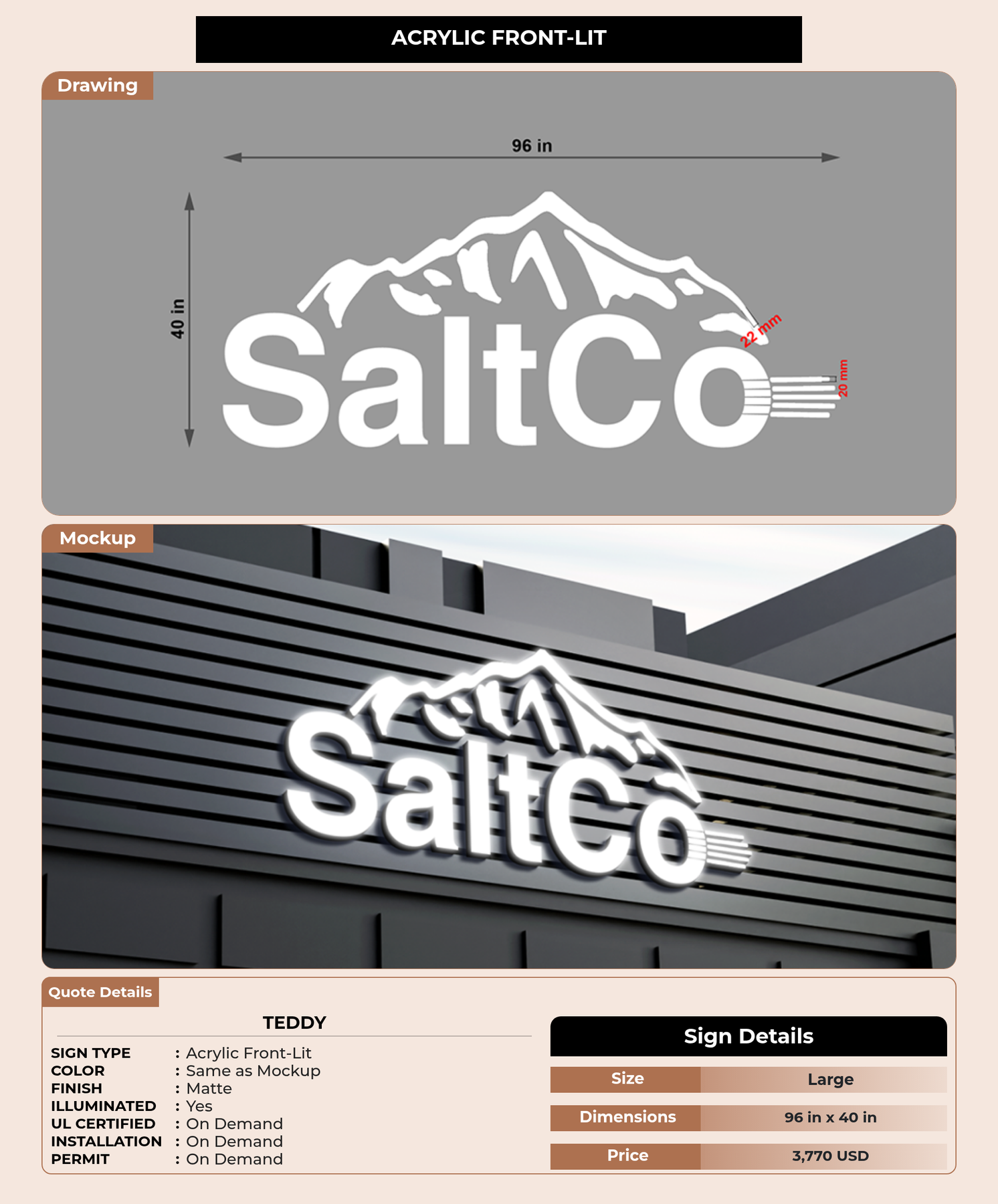 Enhance your business presence with our expertly crafted signage, made from top-quality material, to ensure longevity and durability. Fully customizable to reflect your unique brand identity, our signage offers a professional and polished appearance. Easy to install and low maintenance, it’s the perfect addition to any business setting. Trust us to deliver a product that not only meets but exceeds your expectations.
