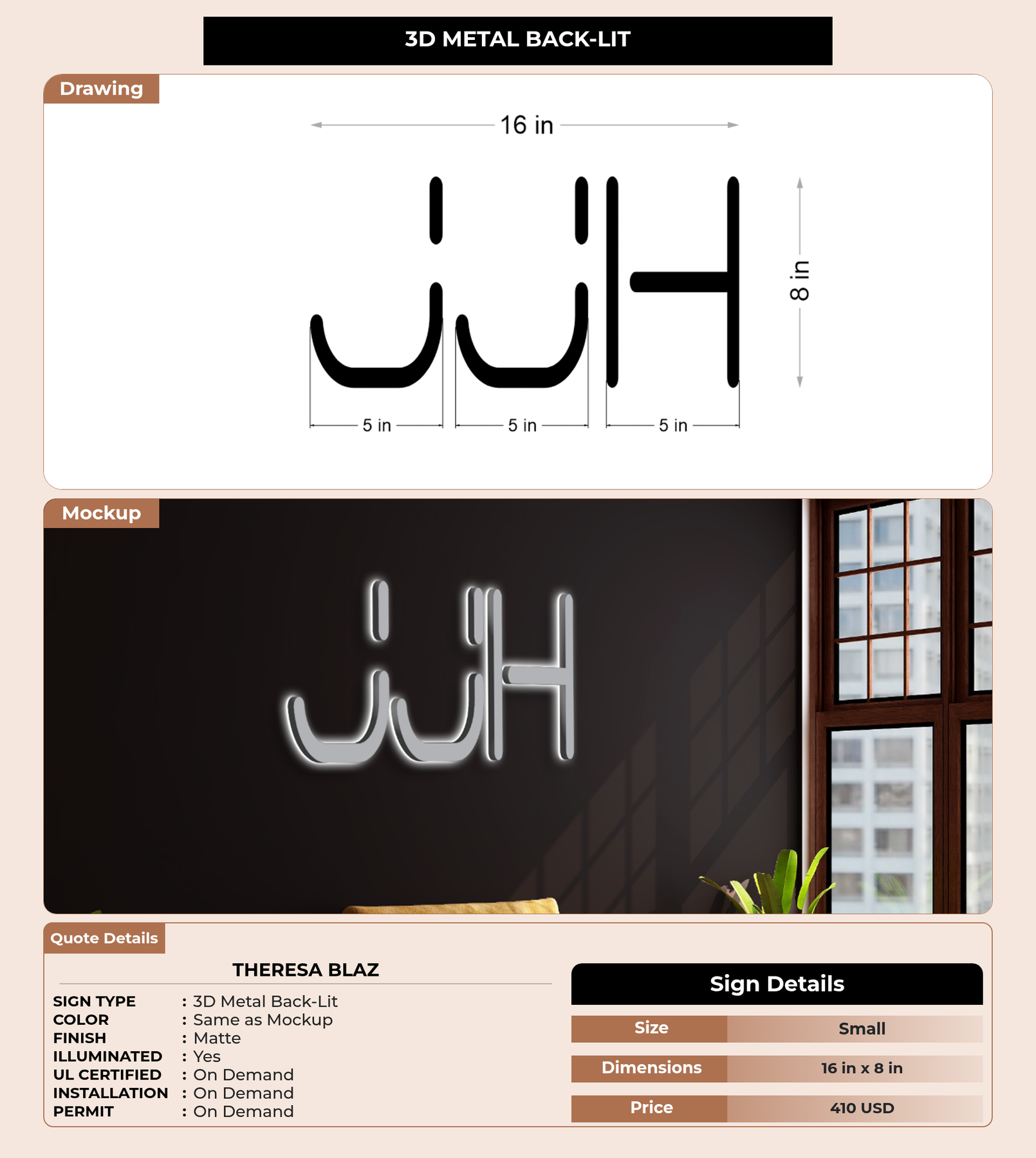 Eye-catching custom 3D sign for Theresa Blaz