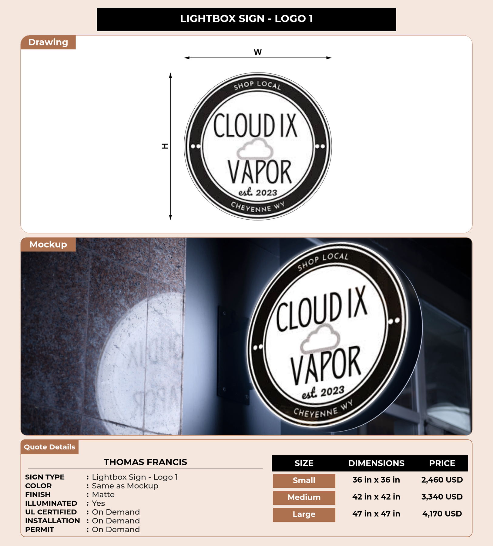 CUSTOM MOCKUP SIGN FOR Thomas Francis