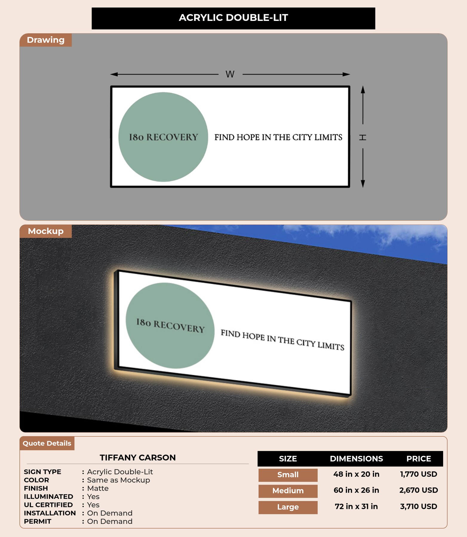 Enhance your business presence with our expertly crafted signage, made from top-quality material, to ensure longevity and durability. Fully customizable to reflect your unique brand identity, our signage offers a professional and polished appearance. Easy to install and low maintenance, it’s the perfect addition to any business setting. Trust us to deliver a product that not only meets but exceeds your expectations.