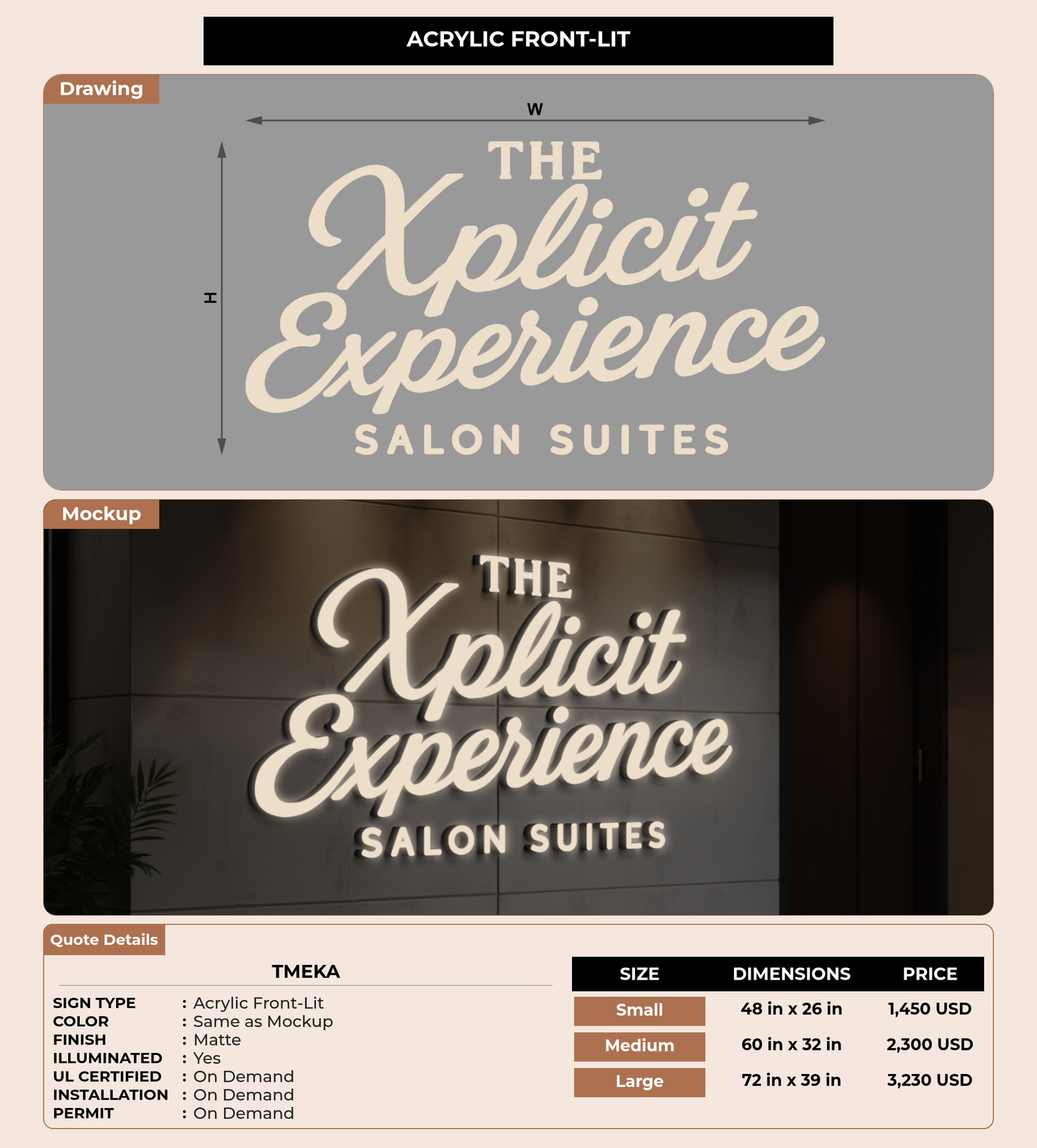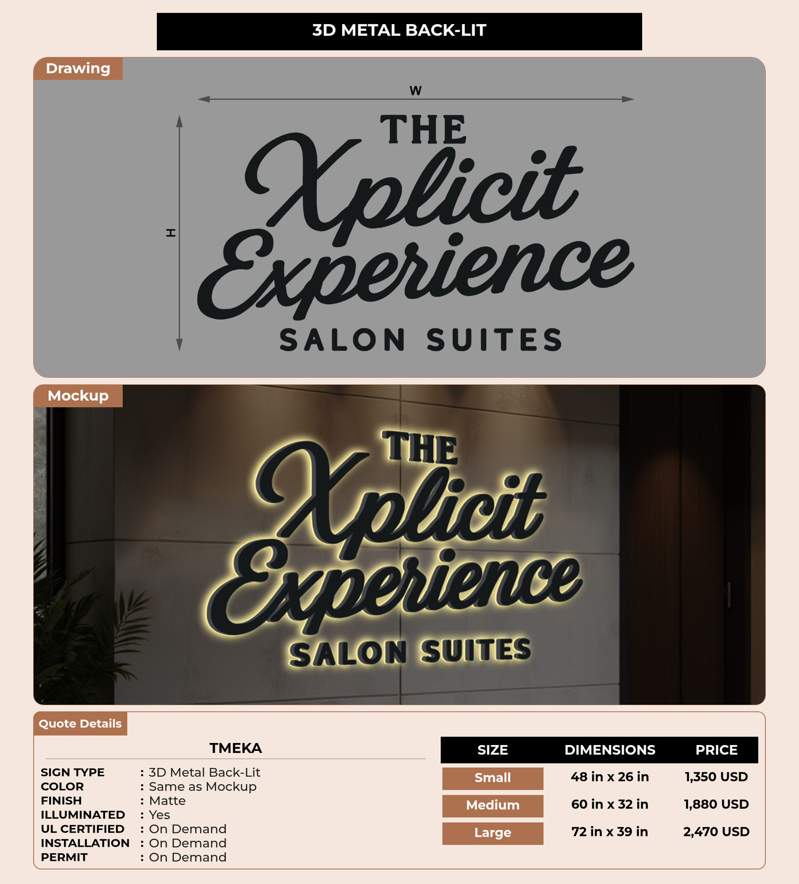 Eye-catching custom 3D sign for Tmeka