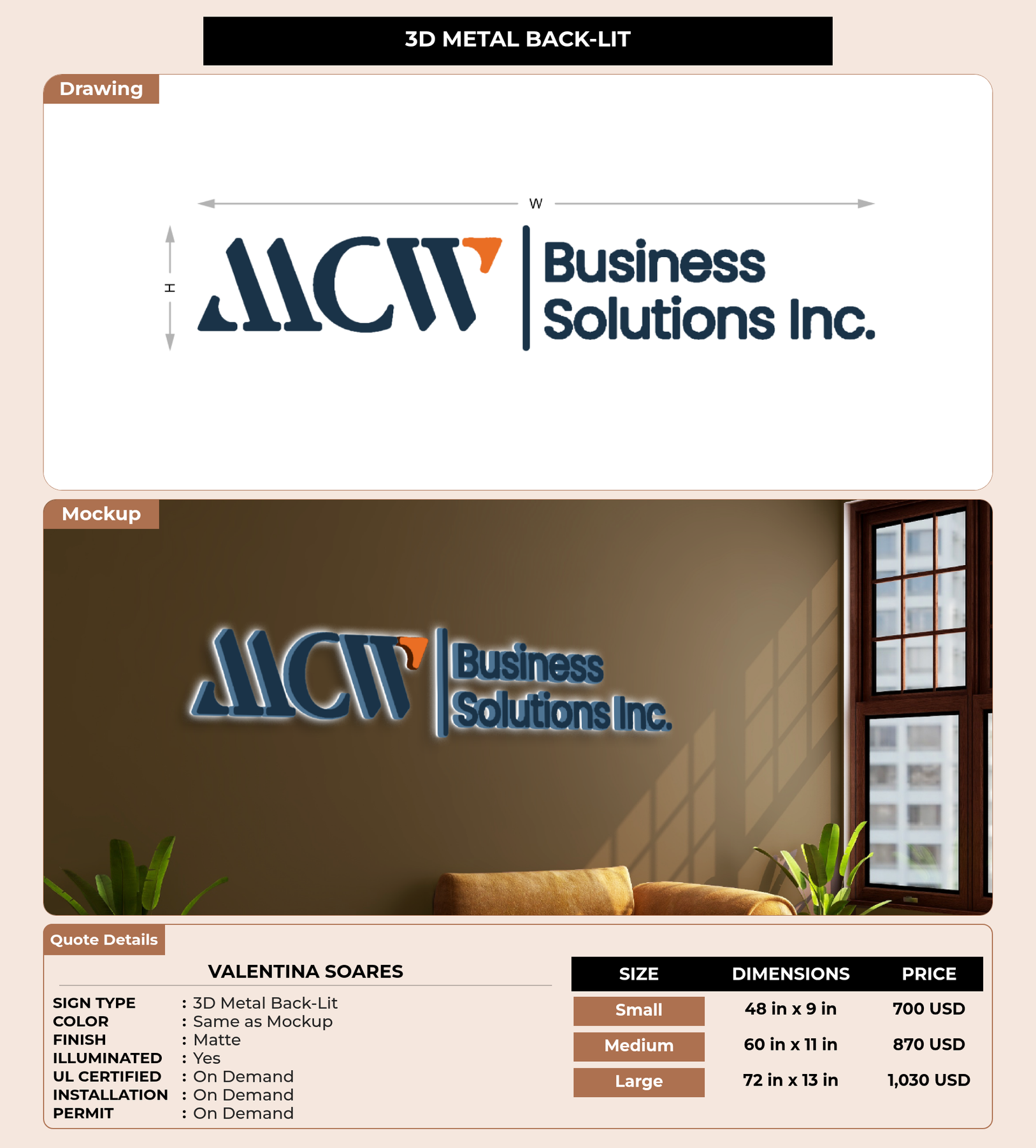 Crafted with premium material, this signage will elevate your business image, precisely mirroring your logo for a professional look.
